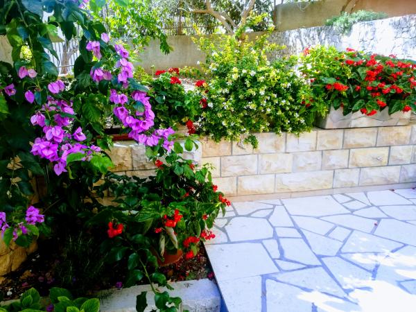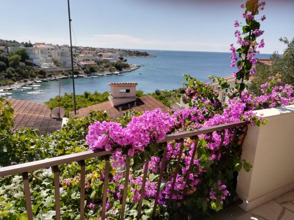 Stan je vrlo velik i ima natkriveni parking. Praktično, vanjski tuš. Stan je dobro opremljena sa svim potrebnim sadržajima, gdje je bilo samo mala ručnika i nema ručnici. Ugodan će biti tuš zavjese / zid umjesto kada (sa 4 osobe, u prizemlju se brzo mokri tijekom tuširanja). Terasa sa 2 sjedala je jako velik i možete uživati u prekrasnom pogledu! U 2 minute, mirna uvala je lako dostupna, voda je čista. A suncobran se preporučuje kao sjena mjesta ograničen. Sunce ne postoji. Homeowner i slatki pas živi u prizemlju i vrlo su lijepo i korisno !! Roštilj se može koristiti. Super morao kupiti kruh, mlijeko i kekse i mobilni uslugu doručka. Sveukupno, mi smo se osjećali jako daleko od masovnog turizma!