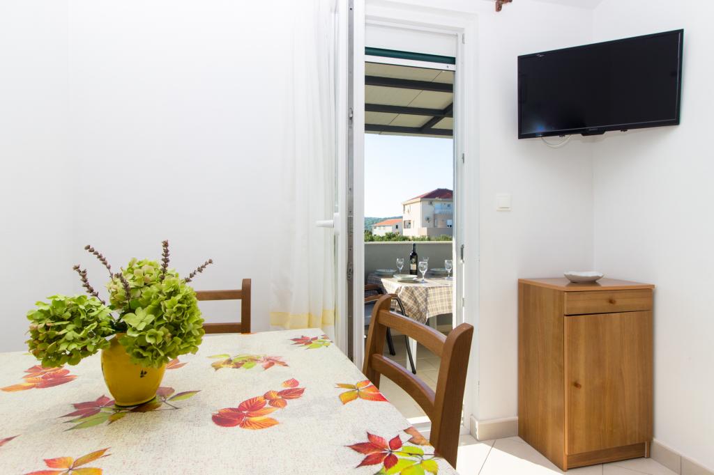 Apartmani Periska nalaze se u Kanici, malom mjestu s kristalno čistim morem i malim kamenim plažama. Kanica je malo mirno mjesto idealno za uživanje u ljetnim čarima sunca i mora. Kanica nudi za goste željne aktivnijeg odmora ronjenje, ribolov, skijanje na vodi i brodove za izlet. Pješčana uvala u Kanici se smatra jednom od najljepših na Jadranu. Ovo mjesto udaljeno je od Trogira 25 km, a nalazi se na pola puta između Šibenika i Splita. Apartmani se sastoje od dviju soba, kuhinje i wc-a. Svaki od apartmana sadrži TV s kanalima, WiFi internet, klima uređaj, ručnike i posuđe. Apartmani su ugodni i dobro opremljeni, a okoliš je uređen i pun mediteranskog bilja i autohtonih vrsta kao što su masline. Naši apartmani su mirna oaza, u čijem okruženju nema drugih kuća, gdje možete uživati u morskim aktivnostima i izvrsna pozicija za izlete. Nacionalni parkovi Krka i Kornati, povijesni gradovi Trogir, Split i Šibenik, mali turistički gradići Rogoznica i Primošten. Svaki apartman ima svoje parking mjesto u dvorištu kuće koji je uključen u cijenu boravka Također, svi gosti kuće imaju pravo na korištenje grilla koji je uključen u cijenu boravka. Plaža Kanica se nalazi na udaljenosti od 300 metara. Plaža je šljunčana s plitkim ulaskom u more te idealna za obiteljsko kupanje. Plaža Žaline se nalazi na udaljenosti od 800 metara. Plaža je u potpunosti prirodna te su apartmani Periska najbliži u mjestu do plaže Žaline. Gosti koji borave u apartmanima Periska imaju osiguran parking u blizini prirodne plaže Žaline (uključeno u cijenu boravka). Dojmove boravka u našim apartmanima od dragih nam gostiju možete vidjeti i na našoj web stranici. Za sve upite stojimo na raspolaganju i veselimo se Vašem dolasku.