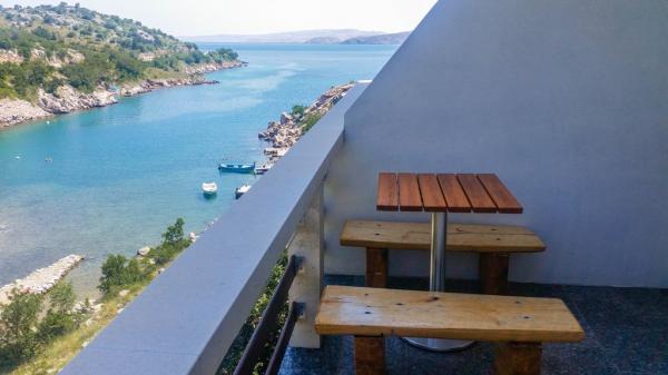 Stan je bio prostor za praktičnu, na visokoj razini, čiste. Uvala je fantastična, puno cvijeća i drveća. Svatko može imati odvojenu mjesto. Tu su ležaljke, tuševi, kajak. Spokoj i mir. Lijep pogled na otok Pag i drugdje na obali se možete kupati.
