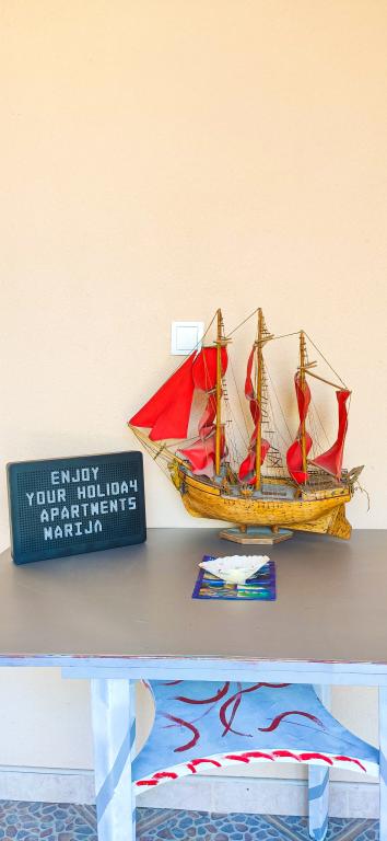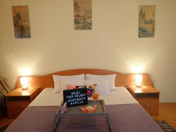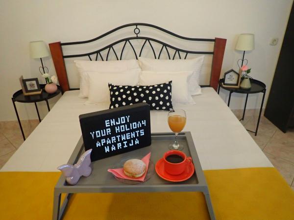 Apartmani Marija su smjesteni u mirnom dijelu Karlobaga, svega 50 metara od mora i plaze. Do samog centra grada ima 5min hoda. Klimatizirani apartmani se nalaze u prizemlju, imaju pogled na more, svaki apartman ima svoju terasu, besplatni WiFi. Gosti na raspolaganju imaju grill rostilj sa natkrivenom terasom. Privatni ogradjeni parking je u sklopu objekta i nije potrebna rezervacija. Ispred kuce se nalazi potpuno uredjeno i ogradjeno djecije igraliste. U nasem objektu dozvoljen je boravak kucnim ljubimcima.