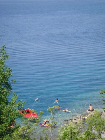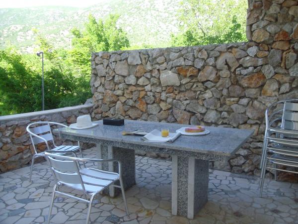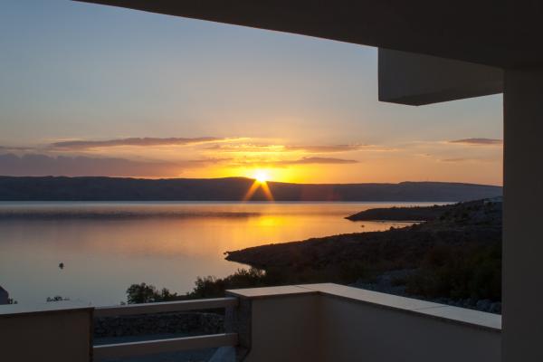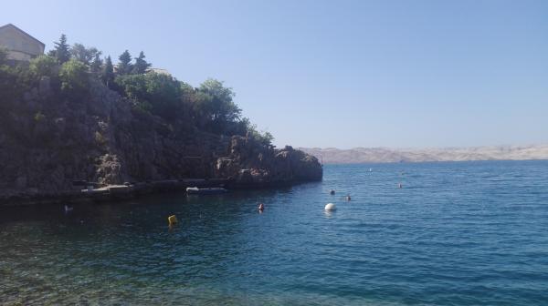 Apartman s lijepim pogledom na more nalazi se u kući od koje put stepenicama vodi do plaže. Apartman je funkcionalno uređen za odmor parova ili manjih obitelji (s djecom), a balkon je zaštićen od jakog podnevnog sunca i opremljen stolovima/stolicama. S balkona je širog pogled na more i Velebit, u blizini je park prirode i nacionalni park. Plaža je toliko blizu da gosti često idu više puta dnevno kuća/ plaža, a navečer je mjesto mirno za šetnju ili restoran, a neki skoknu (5 min. autom) do obližnjeg Karlobaga (više restorana, više dućana, pekara, voćarna, banka i sl. ). Mjesto je idelano ako se želite opustiti u mirnom odmoru uz more i to spojiti s kojim izletom na Pag, do Plitvica, na Velebit, do Zadra. . U blizini je park Adventure-Park Rizvancity (Rizvanuša) koji se posebno svidi većoj djeci i mladima i utociste za medvjede u Kuterevom. Gosti od nas u dnevnom izletu mogu obici i NP Plitvicka jezera.