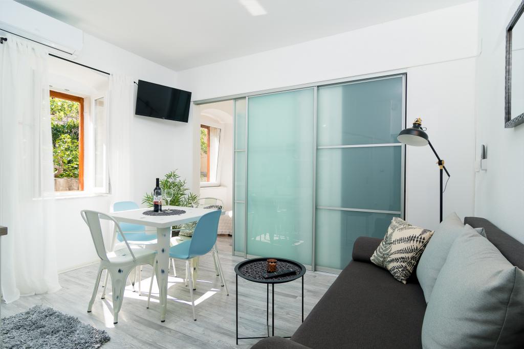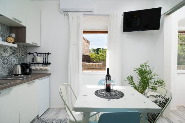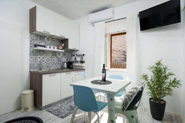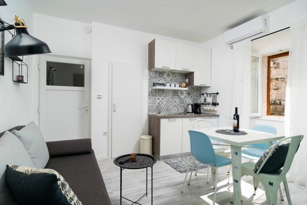 Novouređeni studio apartman smješten u Kaštel Kambelovcu na trgu Brce uz rivu(pokraj crkve) u staroj kamenoj kući. Objekt se nalazi na izvsnoj lokaciji svega 30m od mora i 50m do prve plaže. Svi važni objekti poput pošte, banke, dućana, ribarnice, restorana, autobusne stanice itd. nalaze se uokolo 100m od apartmana. Apartman je smješten u mjestu između dvaju gradova Splita i Trogira-poznatih po iznimnoj kulturnoj baštini pod Unescovom zaštitom, te je udaljen od zračne luke svega 4-5 km. Studio apartman se sastoji od kuhinje, spavaće sobe, kupaonice i ostave. Mirno okružje omogućit će vam kvalitetan boravak i nezaboravan odmor. Dobrodošli! *napomena:poštovanim gostima koji iznajmljuju smjestaj deset i više noćenja nudimo popust od 10%!
