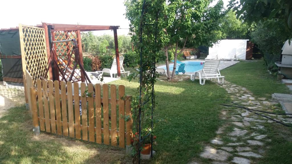 Više od 100 m2 stambenog prostora, velikog dnevnog boravka, blagovaonice i kuhinje, 3 sobe i dvije kupaonice, apartman također uključuje terasu površine 35 m2 i privatni bazen na južnom dijelu vrta. U kuhinji se nalaze hladnjak, zamrzivač, pećnica, električni štednjak s 4 polja, pribor za jelo, kuhalo za vodu, mikrovalna i pitka voda. Svaka soba također ima čistu posteljinu, ormare, glačalo i dasku za glačanje, ogledala. U dnevnoj sobi nalazi se SAT TV, klima uređaj i brzi WiFi (Internet). Kupaonica ima perilicu rublja, sušilo za kosu, ručnike, šampon itd. Također postoji otvoreni kamin koji je idealan za roštilj. Kuća ima i voćnjak i dva parkirna mjesta.