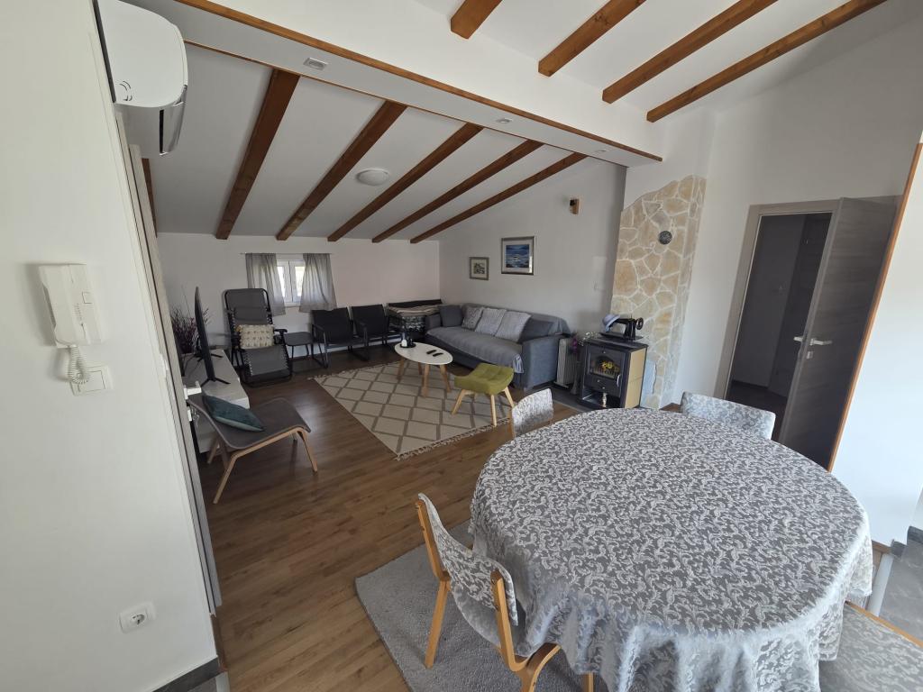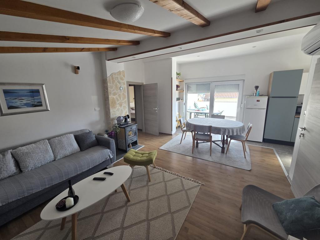 Apartman Jela smješten je u mirnom okruženju te idealan za obiteljski odmor. Opremljenost: -klima uređaj -opremljena kuhinja -perilica rublja -besplatan WIFI i parking -veliki smart TV Za više informacija slobodno nas kontaktirajte. :)