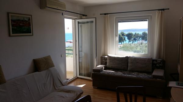 Apartman je smješten na trečem katu stambene zgrade u Kaštel Štafiliću, predio Bile, u blizini Resnika. Okrenut je prema moru i nudi prekrasan pogled na cijeli Kaštelanski zaljev, Split i bližnje otoke. Nalazi se na mirnoj lokaciji na kraju ulice tako da nema buke. Apartman od 45m2 se sastoji od predsobe, kupatila, spavače sobe, velike dnevne sobe sa kuhinjom i loggiom. U spavačoj sobi nalazi se velik krevet za dvije osobe, u dnevnoj sobi je veliki trosjed na razvlačenje koji se pretvori u velik krevet za dvije osobe, te još jedan manji trosjed. Kuhinja je kompletno opremljena, aparat za kavu, perilica suđa, pečnica. Na loggi moguče je koristiti električni gril. Apartma ima sušilo za kosu, usisavać prašine, glačalo. Upotreba klime se ne plača dodatno.