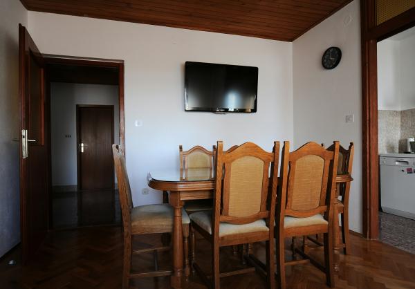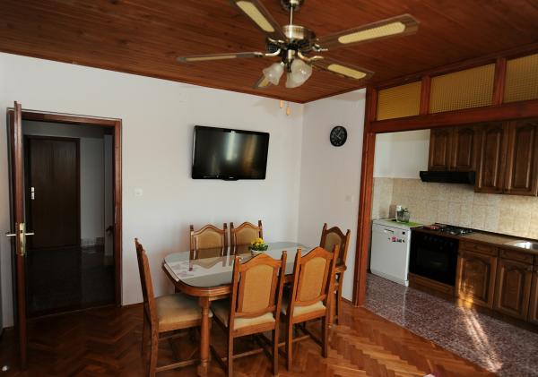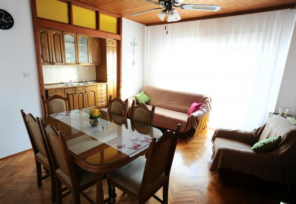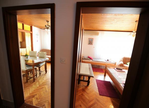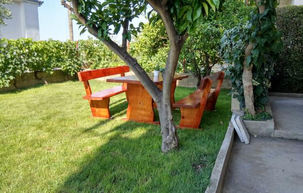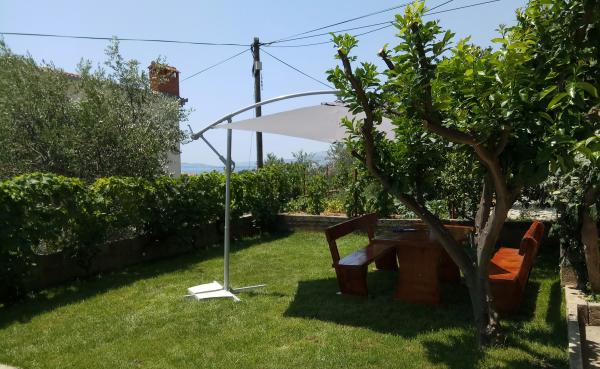Apartman ima tri spavaće sobe sa sedam kreveta, dnevni boravak sa kaučem na razvlačenje, kuhinja, kupatilo, wc. Nalazi se u prizemlju te možete koristiti vrt sa drvenim stolom i klupama te roštiljom. Klimatiziran je i ima sve potrebno za ugodan boravak (perilice, frižider, ledenica, mikrovalna, WIFI, . . ) Od Splita i Trogira je udaljen cca desetak kilometara.