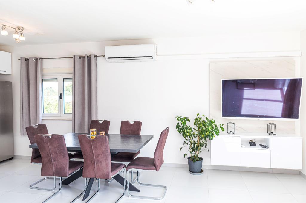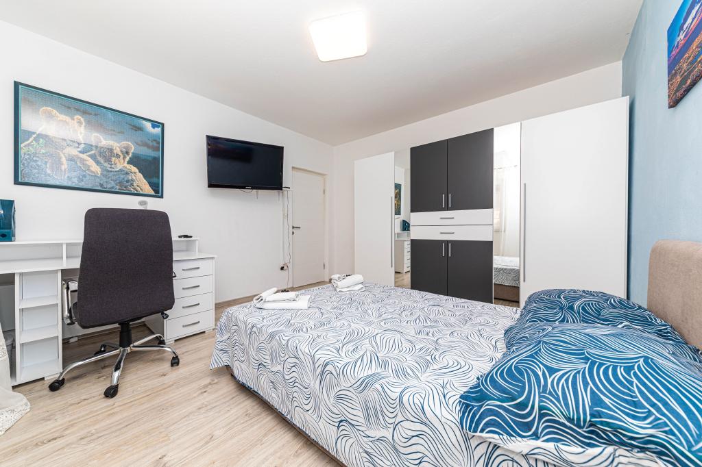 Pročitaj više Smještajne jediniceZa potvrdu rezervacije je potrebno uplatiti 25% od ukupne cijene najma,ostatak novca se uplaćuje prvi dan pri dolasku u gotovini ili uplatom na račun. Korištenje klime je uključeno u cijenu. Vrijeme dolaska od 16:00 h, a vrijeme odjave do 10:00 h .
