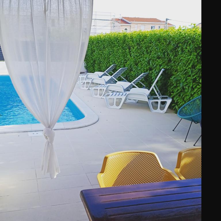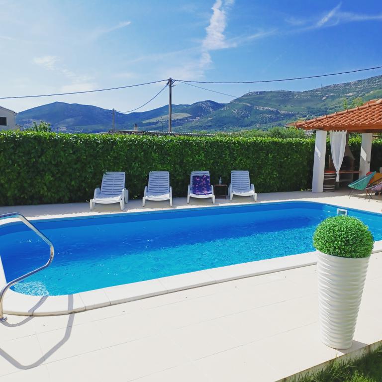 Savršeno mjesto za odmor! Prekrasan, prostran APARTMAN MAGDALENA sa Privatnim Vanjskim Bazenom je idealno smješten između UNESCO-vih gradova Splita i Trogira, do kojih se može doći automobilom/autobusom za 15 minuta. Veliki vrt okružen bujnom vegetacijom i privatnim vanjskim bazenom samo za vas i vašu obitelj ili prijatelje. Samo nekoliko minuta autom od zračne luke, nekoliko minuta hoda od plaže, restorana i trgovina. Ljubazni domaćini koji žive u prizemlju će vam uvijek biti na usluzi :)