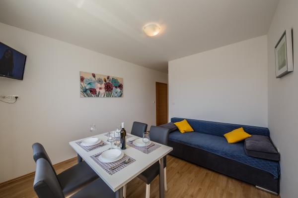 Apartmani Martina su smješteni u prostranoj, moderno uređenoj kući. Kuća je okružena velikim vrtom, te se nalazi na mirnoj lokaciji. Svaki od apartmana ima svoj zaseban ulaz. Prvi apartman se nalazi u prizemlju kuće i sastoji se od 3 spavaće sobe, 2 kupaonice i velike kuhinje s blagovaonicom i dnevnim boravkom. Također ima vlastitu terasu i izlaz u vrt. Na prvom katu kuće nalazi se drugi apartman. Sastoji se od dvije spavaće sobe, kupaonice, kuhinje i dnevnog boravka. Također ima vlastiti veliki balkon s prekrasnim pogledom na okolicu. U sklopu apartmana su i 4 besplatna parking mjesta te oprema za roštilj. Najbliži supermarket je na 5 minuta šetnje od apartmana kao i autobusna stanica, centar grada i najbliža plaža su na 10 minuta šetnje.