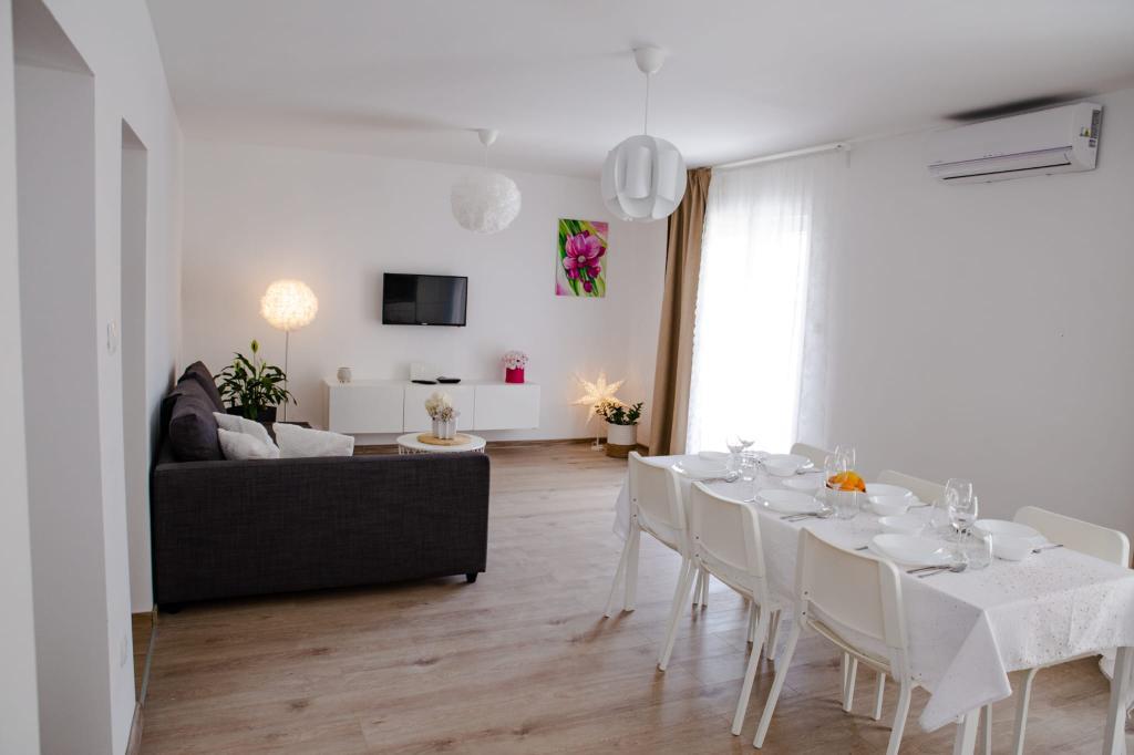 Dobrodošli u naš prekrasan apartman s dvije spavaće savršen za vaš odmor. Ovaj nedavno namješteni apartman ima elegantan i moderan dizajn, pružajući udobnu i privlačnu atmosferu za vaš boravak te je namijenjen za maksimalno 6 osoba . Apartman je idealno smješten u blizini trgovina prehrambenih proizvoda, što ga čini praktičnim za opskrbu osnovnim potrepštinama. Ako ste raspoloženi za plažni dan, bit će vam drago znati da su sjajne obale udaljene samo kratkih 500 metara hoda.