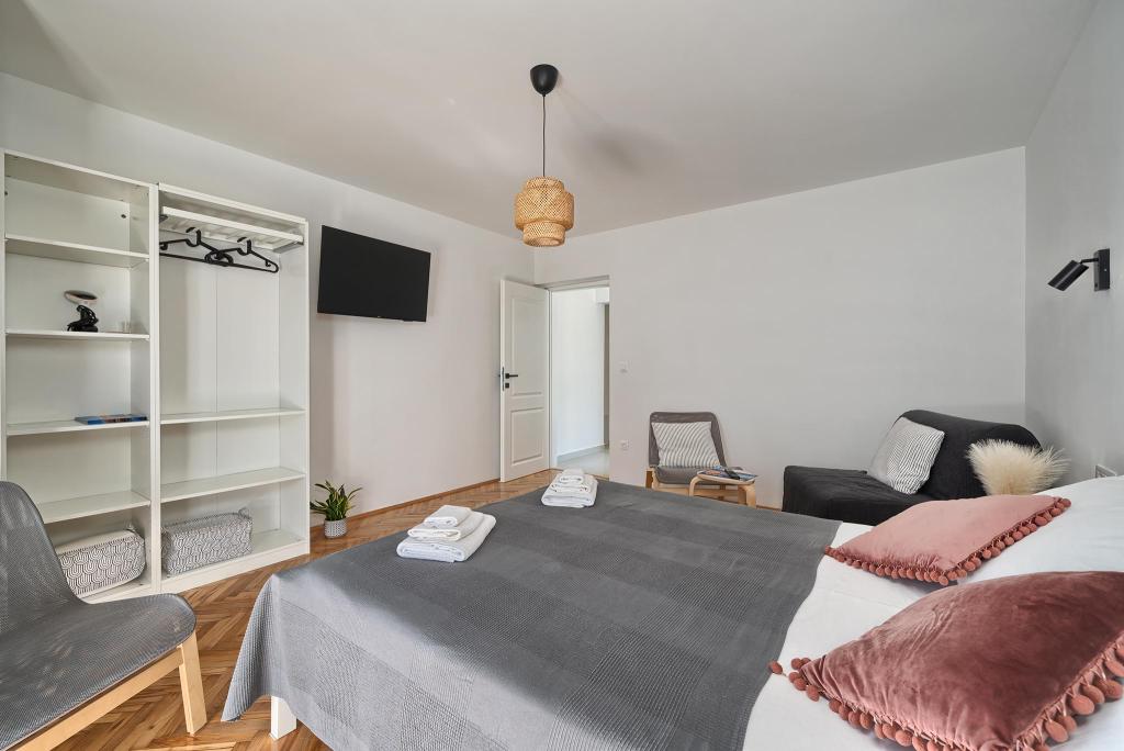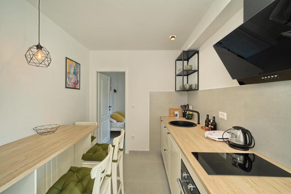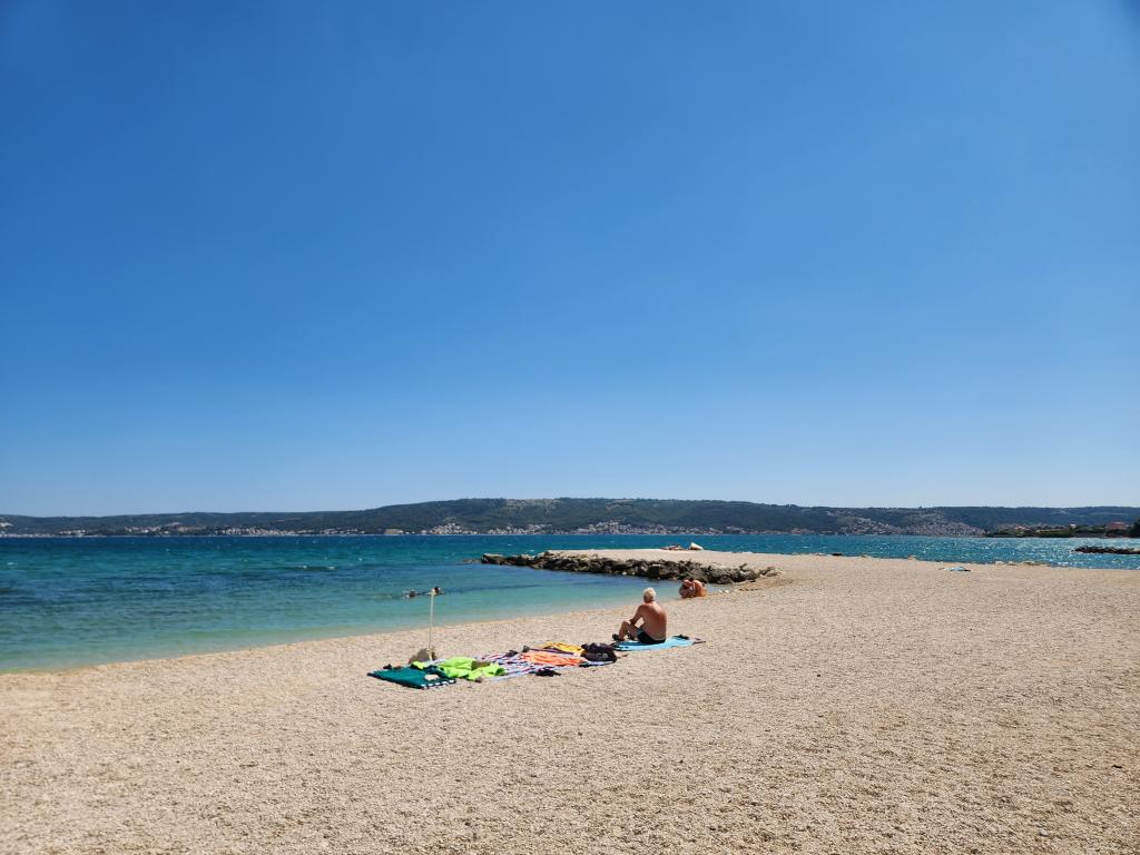Dvije minute šetnje do plaže, naš novo renovirani apartman s dvije spavaće sobe nudi savršenu kombinaciju udobnosti i praktičnosti za vaš boravak u Dalmaciji. S modernim uređenjem u ugodnom okruženju, idealna je baza za ljubitelje plaže. Lokacija apartmana je blizu trgovine, kafića, restorana, ljekarne i aerodroma, idealna za bezbrižan odmor. Glavna spavaća soba uključuje bračni krevet, jednosjedi na razvlačenje, pametni televizor i pristup privatnom balkonu s sjedećom garniturom. Druga spavaća soba ima bračni krevet. Naša kuhinja opremljena je svime što vam je potrebno za pripremu obroka, uključujući štednjak, pećnicu i hladnjak, i blagovaonicu. Kupaonica je opremljena osnovnim potrepštinama i ručnicima. Apartman je opremljen Wi-Fi-jem i klima uređajem. Gosti mogu uživati u vanjskom zajedničkom prostoru s roštiljem. Besplatan parking na posjedu.