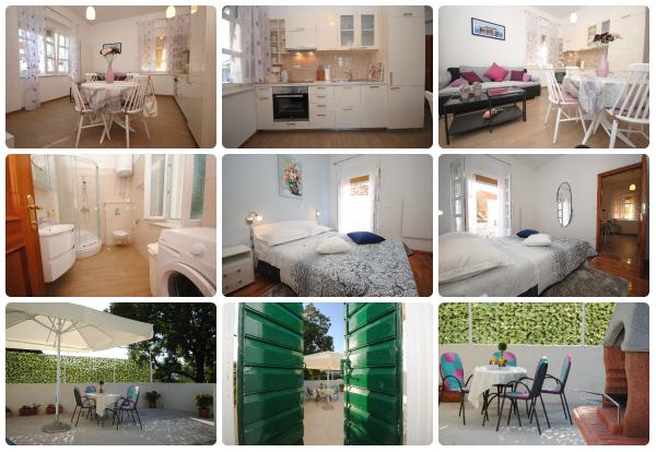 Apartmani Gluic nalaze se 250m od glavne plaže Gabine u Kaštelima. Udaljeni su 16km od Splita i 8km od Trogira. U prizemlju objekta se nalazi trgovina. Nedaleko od objekta nalazi se pekara, a mesnica se nalazi odmah preko puta ulaznih vrata. Velika terasa od 80m2 s vrtnim namještajem, suncobranom i opremom za roštilj čini ovo mjesto izvrsno za opuštanje. Terasa je također na prvom katu i zaklonjena je od pogleda s ulice. Sobe se nalaze na juznoj strani i imaju zaseban balkon. Klimatizirana jedinica ima potpuno opremljenu kuhinju s perilicom posuđa, hladnjakom, čajnikom, mikrovalnom i pećnicom. Apartmani također imaju perilicu rublja, posteljinu, ručnike, dasku za glačanje, sapun, šampon za kosu i ostale detalje za vaš ugodan boravak. Apartmani su u potpunosti pokriveni besplatnom wifi mrežom. Parkiranje je besplatno. U blizini apartmana nalazi se više kafića i restorana.