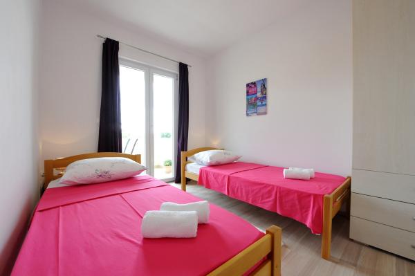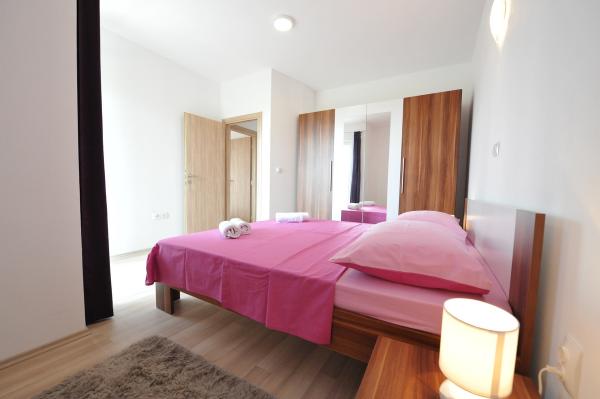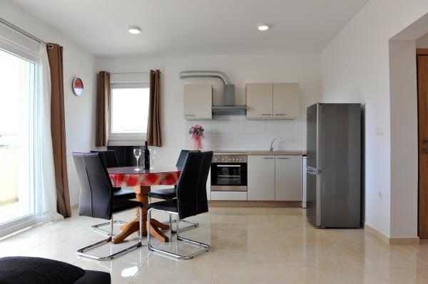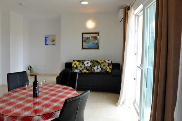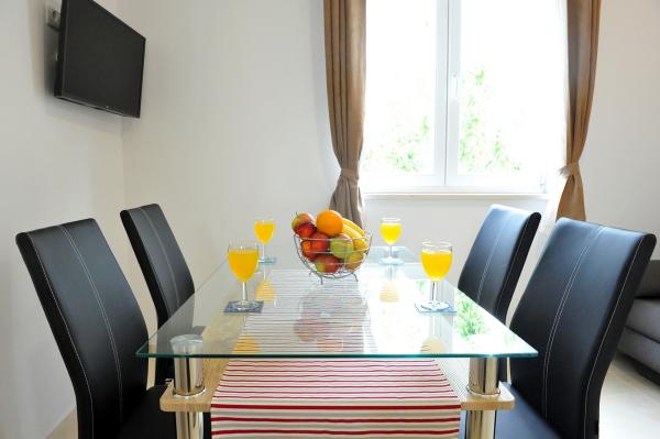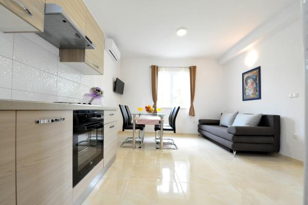 Moderna novoizgrađena kuća s moderno opremljenim i uređenim apartmanima. Kuća je smještena na mirnoj lokaciji, savršenoj za obiteljski odmor, s velikim travnjakom, vrtom i voćkama. Apartmani imaju opremljenu kuhinju s perilicom suđa, dnevni boravak, TV, kupaonicu s tušem. Gostima je na raspolaganju besplatan parking i wifi.