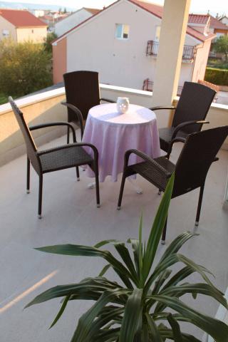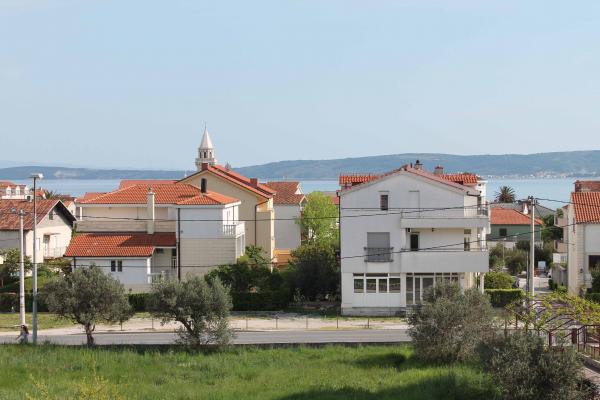 Apartman**** je smješten na drugom katu obiteljske kuće. Prostran i moderno opremljen apartman ima predivan pogled na more i centar mjesta (cca350-400m).U blizini se nalazi uređena plaža (400m), pošta (300), autobusna stanica (linja 37 Split-Trogir cca250m), supermarket (100m), doktor(60m)... Ispred kuće se nalaze natkrivena tarasa, grill i travnjak - idealno mjesto za druženje i opuštanje.