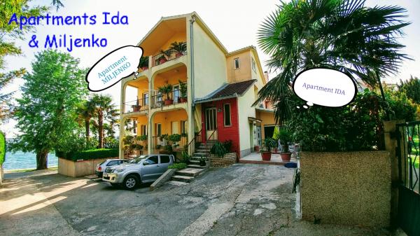 U potpunosti opremljena, 2 dvosobna apartmana, smještena na atraktivnoj lokaciji, 10-ak m od mora, u Kaštel Lukšiću, na Šetalištu Miljenka i Dobrile. Ulazi apartmana su neovisni. 1. apartman je u prizemlju, ima lijepu terasu s koje se pruža pogled na zelenilo i more. 2. apartman je na prvom katu, ima 2 balkona i predivni pogled na plažu i dvorac Miljenka. Svaki ap. sadrži po 1 parking, klimatizaciju, free Wi fi, satelitski TV programi, stalak i peglu, fen, posteljinu, ručnike, sanitar. Kuhinje: sudoperi, ploće za kuhanje, mikrovalne peć. , hladnjaci, pribori za jelo i kuhanje, (u 1. ap pecnica, a u 2. ap. el. peka). Ležajevi: -u 1. ap: 200cmx160cm, 200cmx130cm te kauc 200x130 - u 2. ap: 200x180, 2 po 100x200 te trosjed 200x180 Na terasi: roštilj. Sadrzaj kupaona: wc skoljke, umivaonici, tuš kade, perilice rublja