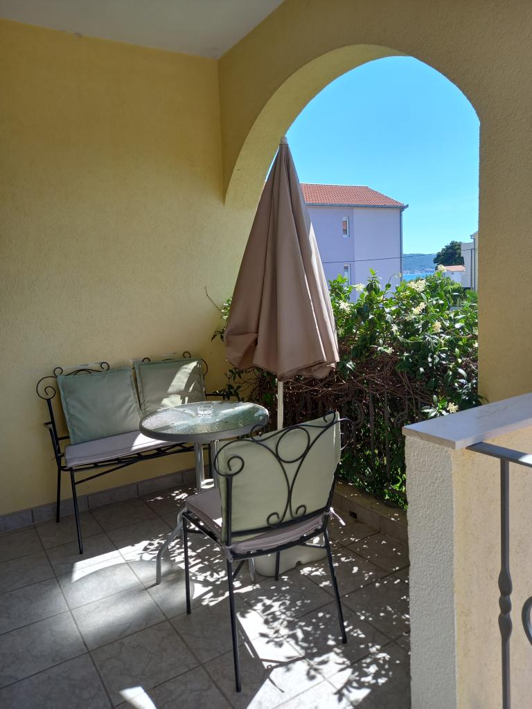 Apartmani su komforni i opremljeni sa:klima, wi-fi i ostalim potrebnim sadžajima. Svi apartmani imaju pogled na more a udaljenost od plaže je 70 metara. Na plaži Vas najprije dočeka simpatićni kafić iz kojeg seže pogled na morsko plavetnilo gdje možete odmoriti dušu i tijelo. Plaža se proteže u duljini 800 metara i mjenjaju se šljunkoviti, kameniti i pješćani djelovi plaže. Šetnicom uz plažu za 15 minuta stižete u centar mjesta. Kaštela obiluju povijesnim utvrdama, trgovima i spomenicima gdje se ljeti održavaju priredbe Kaštelanskog kulturnog i zabavnog ljeta. Smještaj Kaštela između Splita I Trogira obogaćuje mogućnosti kulturnog i zabavnog provoda. Udaljenost 1km od zračne luke čini nas privlačnim gostima koji do Hrvatske dolaze avionom. Našim gostima transfer do/iz zračne luke je besplatan.