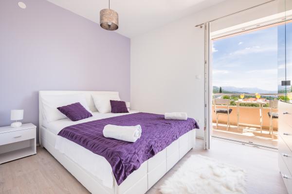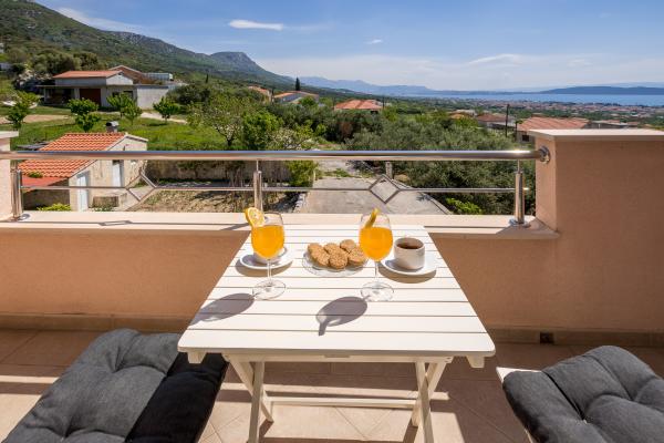 Potpuno novi apartman koji se nalazi u Kaštel Starom između 2 UNESCO zaštićena grada Splita i Trogira. Nalazi se na zadnjem katu obiteljske kuće (3. ) kat pruža jedinstveni panoramski pogled. Interijer je moderno dizajniran i opremljen. Prostrani dnevni boravak se sastoji od velikog kauča, kuhinje, flat screen smart TV. Kupaonica je moderno uređena opremljena sa svime što će vam trebati. Spavaća soba je prostrana s king size udobnim krevetom. Iz spavaće sobe i dnevnog boravka izlazi se na veliki balkon, s kojeg se pruza pogleda na Kastelanski zaljev, Split i otoke. Eksterijer kuće je izuzetno prostran, veliki zeleni vrt pun voća, povrća i cvijeća. Također, možete koristiti kamin za pripremanje peke ili gradela i vanjski stol, tako da možete jesti na svježem zraku.