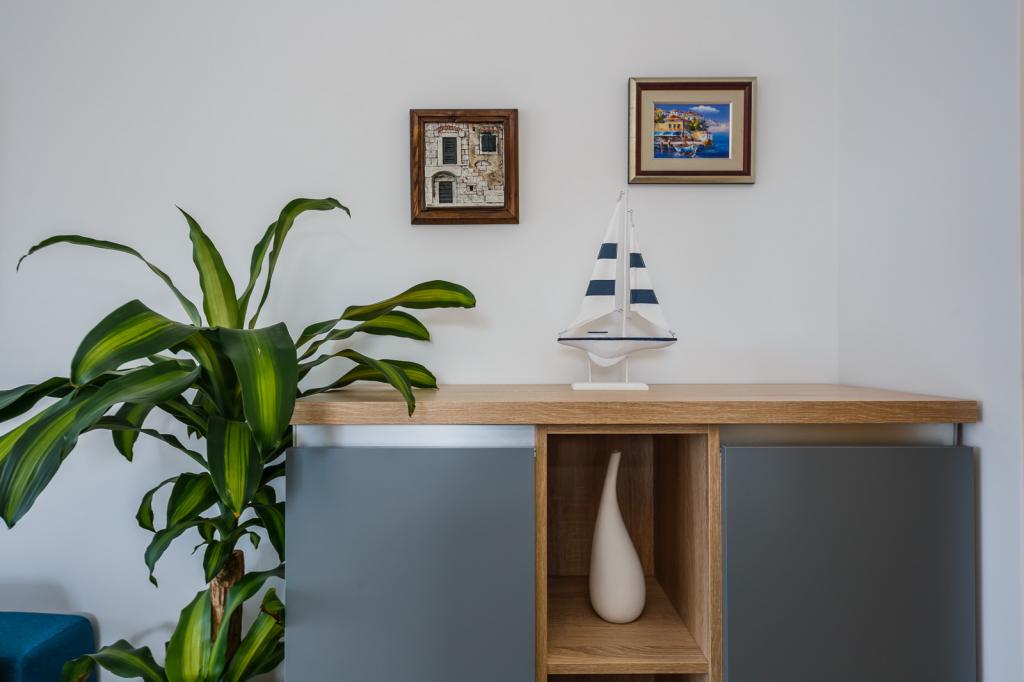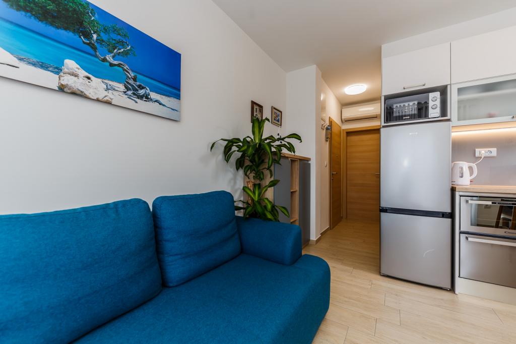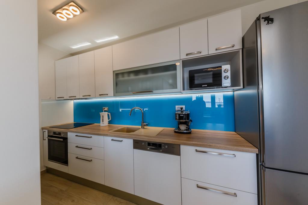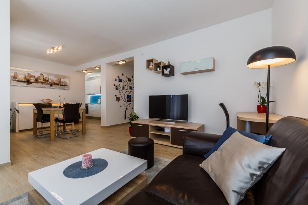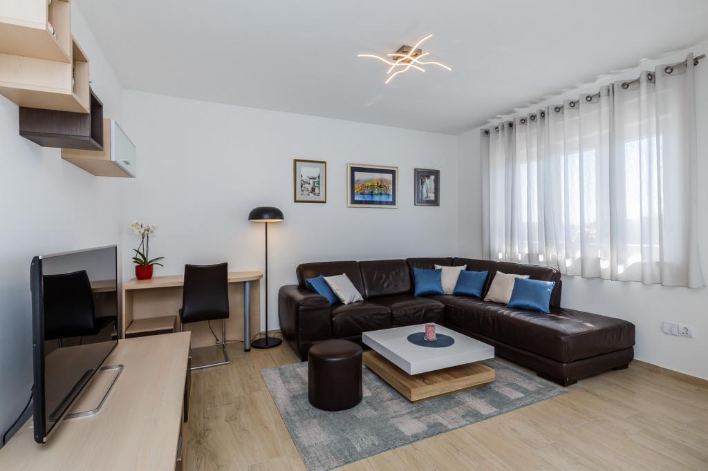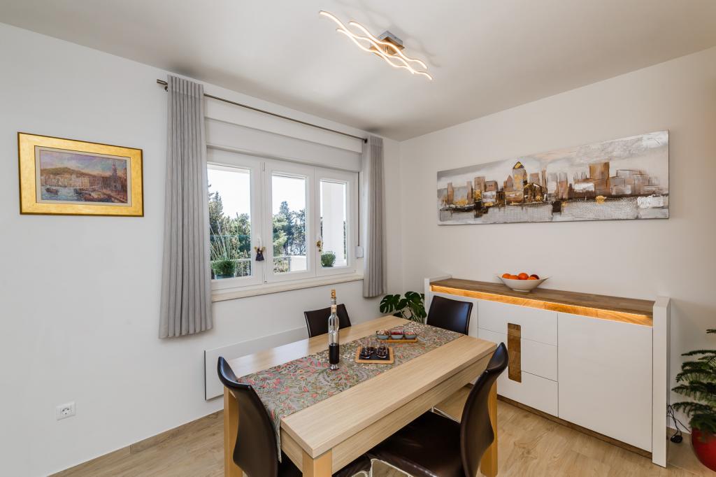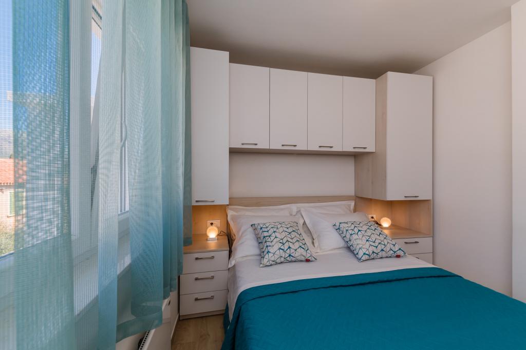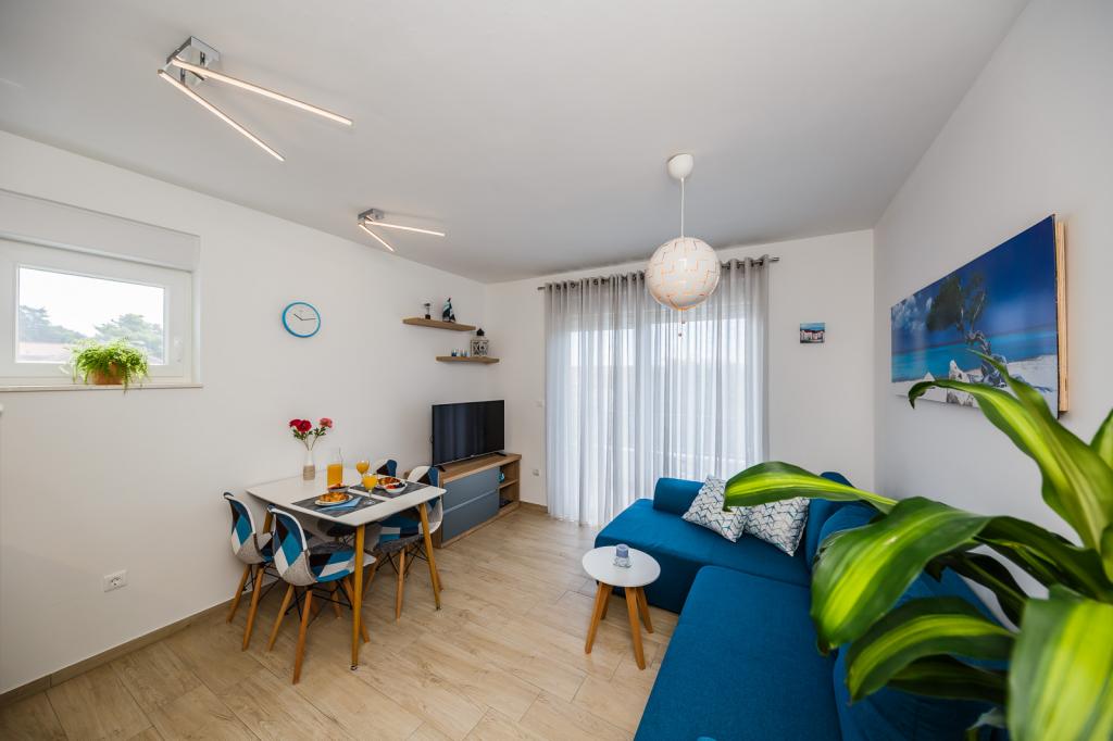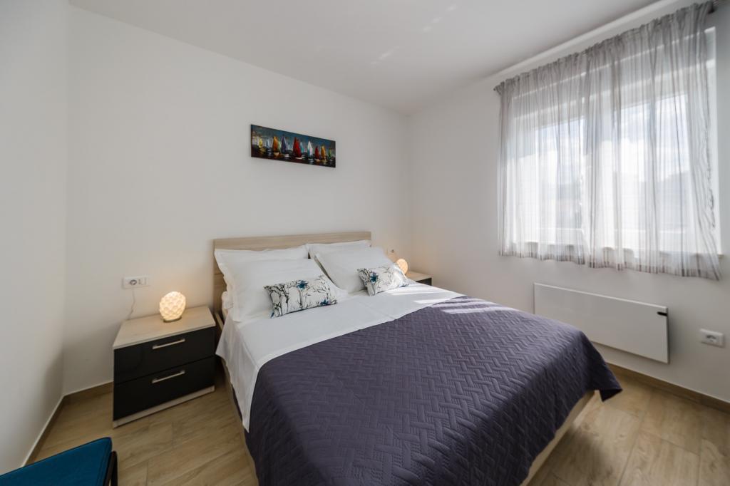 Letujemo u Hrvatskoj svake godine već 26 godina, ali oprema ovog apartmana (perilica rublja, perilica suđa, pećnica, sušilo za kosu, aparat za sendviče, mikser) i, naravno, sve sitnice, aluminijska folija, kuhinjske krpe, i ono što me iznenadilo su ručnici, u svim količinama, i hladno piće su nas čekali. Blizina vode je odgovarajuća, pogled s obale je prekrasan, voda čista i topla. Naravno, stan je namješten vrlo modernim i ukusnim namještajem. Hvala, Damír