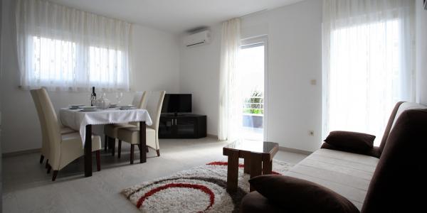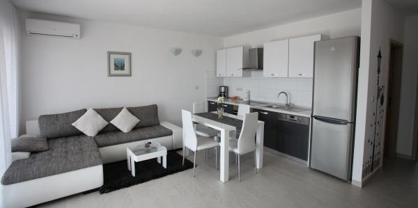 Moderna vila s kompletno opremljenim apartmanima smještena 50 m od mora. Apartmani se nalaze na mirnoj lokaciji blizu plaže. U blizini se nalazi poznati restoran Baletna škola. Centar mjesta je 10 minuta hoda.