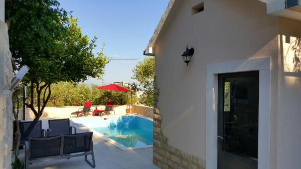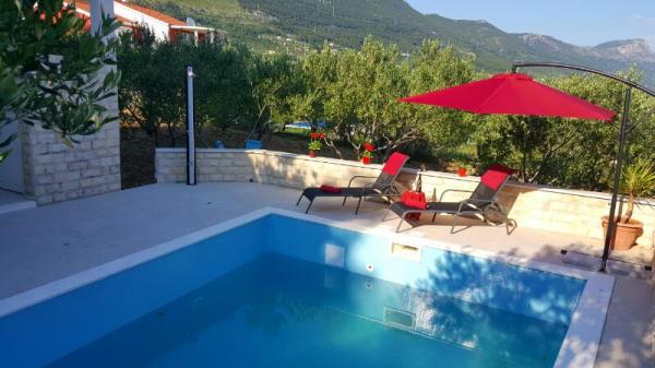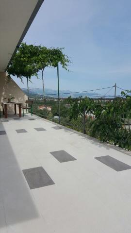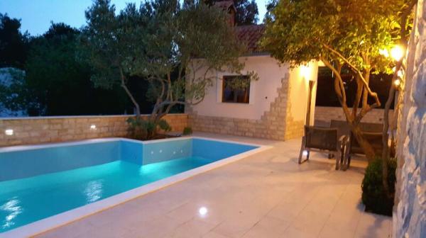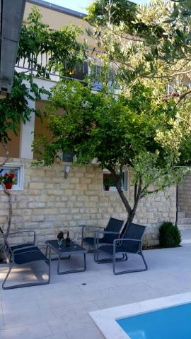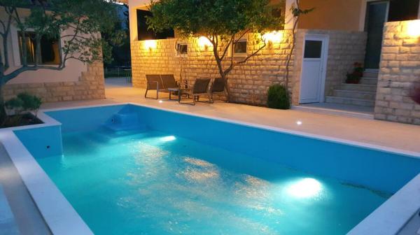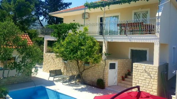 Kompletno namještena, modreno uređena kuća sa bazenom u predjelu Rudina, Kaštel Novi. Objekt se nalazi u podnožju brda Kozjak, okružen zelenilom, odakle se pruža prekrasan pogled na Kaštelanski zaljev, Split i otoke. Savršena oaza mira za provesti svoj odmor, u udobnoj prostarnoj kući, opremljenim bazenom, mirnim i ugodnim noćima, a opet nadohvat svim zanimljivostima. Nalazimo se 5 km od aerodroma, 15 km od Splita i 8 km od Trogira. Za 5-10 minuta vožnje autom ste na prekrasni plažama. Za ljubitelje prirode, brdskog šetanja i biciklizma, iza kuće se nalaze staze brda Kozjak, kao i prekrasno izletište Biblijski vrt, koji je kako i sami naziv kaže raj na zemlji. Prostran stan sadrži 3 sobe, kupatilo i wc, kuhinju, blagavonicu i dnevni boravak, potpuno namješten. Terasa cca 30m2, sa prekrasnim pogledom i hladovinom, savršen je ljetni dnevni boravak. Dvorište kuće ima puno mjesta za igru, veliki parkirni prostor za 4 automobila, kučicu za roštilj, i veliki maslini