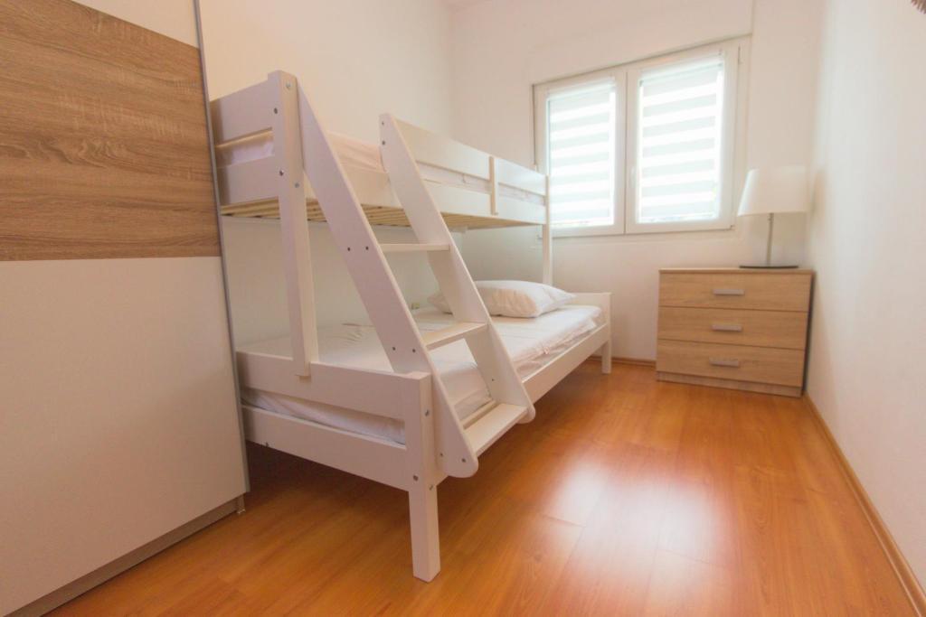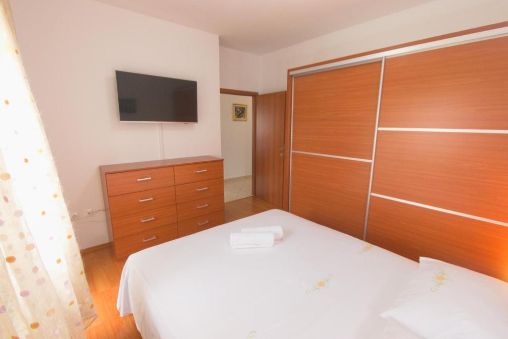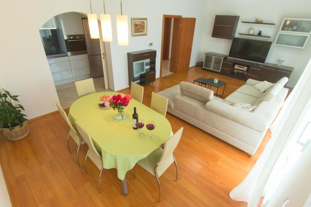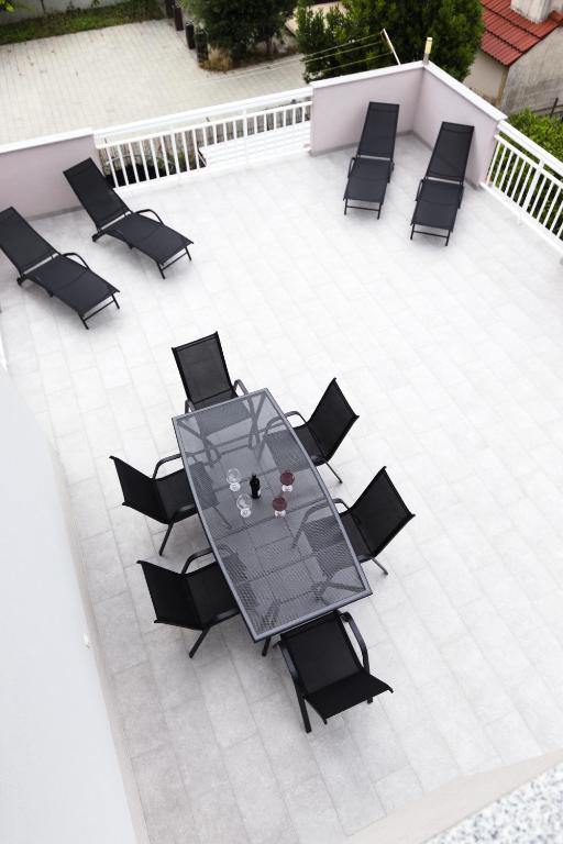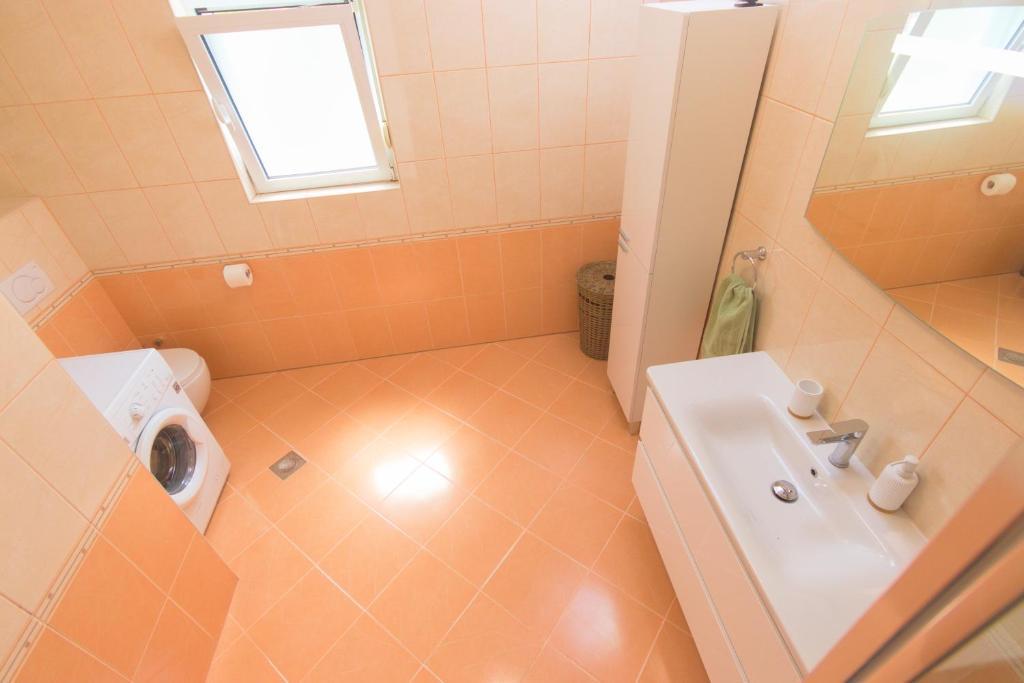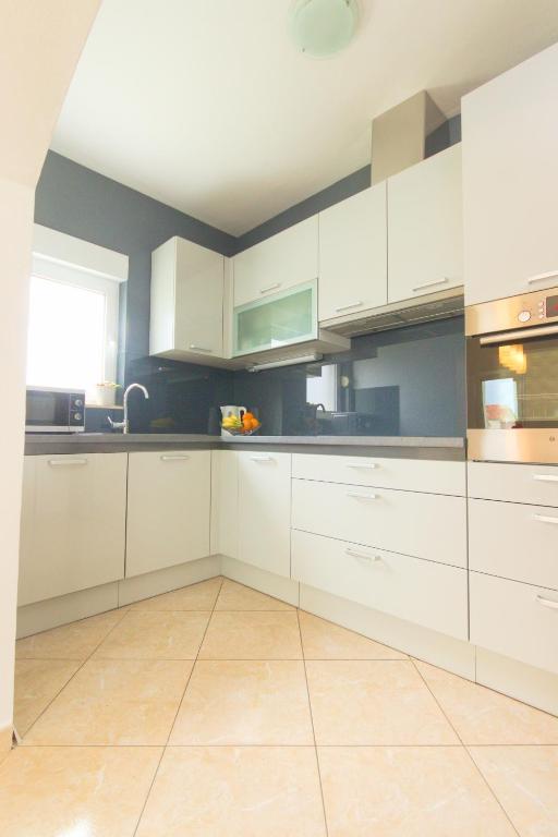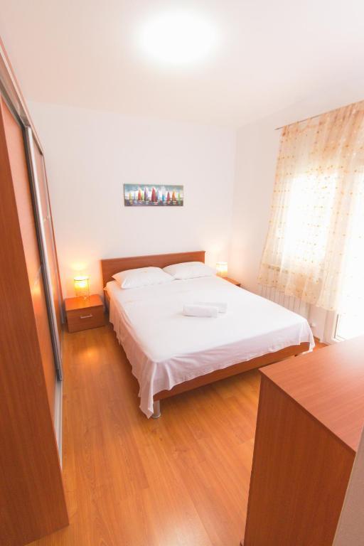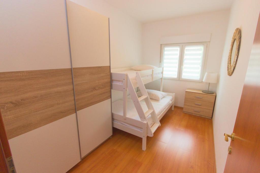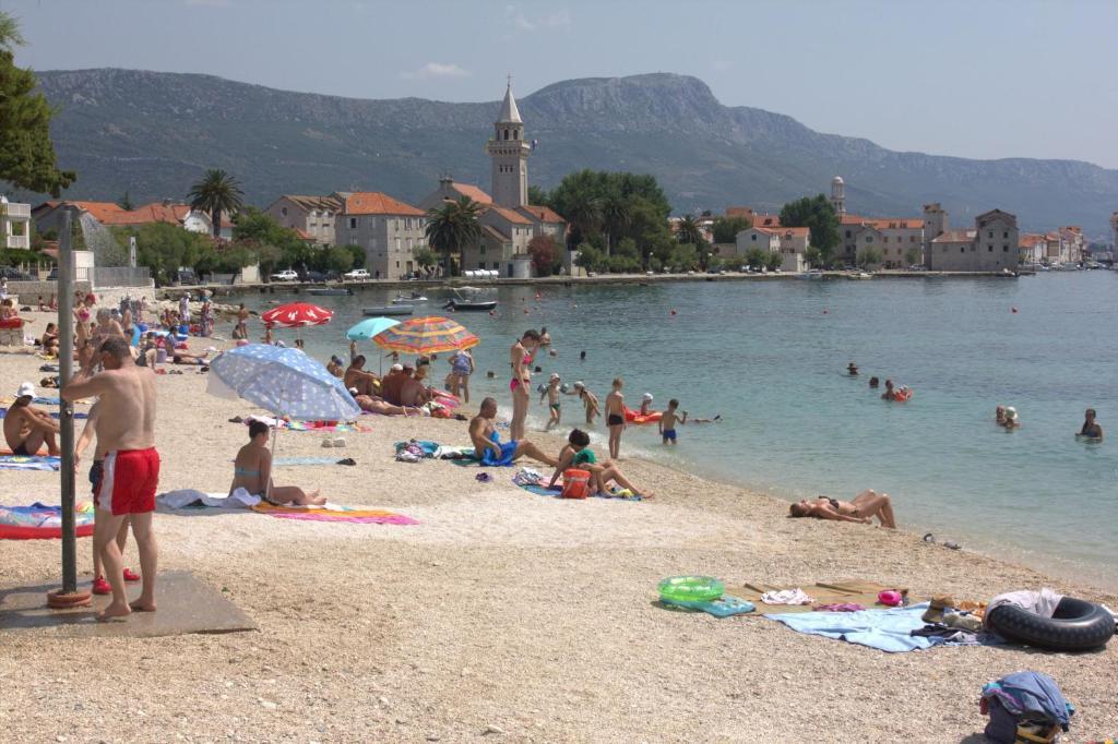 Nalazimo se na izvrsnoj lokaciji, samo 100 metara udaljeni od plaže, što vam omogućuje jednostavan pristup osvježavajućem moru i predivnom pijesku. Prostrani dnevni boravak je idealno mjesto za opuštanje i druženje s obitelji i prijateljima. Namještaj je udoban i suvremen, a prostor je osvijetljen prirodnim svjetlom koje ulazi kroz prozore. Naša kuhinja je potpuno opremljena svim potrebnim aparatima i posuđem kako biste pripremili ukusne obroke. Blagovaonica je prostorna i udobna, savršena za obiteljske večere ili romantične večere. Spavaće sobe su mirne oaze u kojima možete uživati u udobnosti kvalitetnih kreveta . Prostrani ormar pruža dovoljno prostora za pohranu vaše odjeće i osobnih stvari, a posteljina i ručnici su osigurani kako biste se osjećali kao kod kuće. Za sezonu 2025. u sobe sa bračnim krevetima smo ugradili klima uređaj, što omogućava dodatnu udobnost