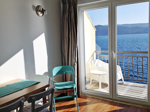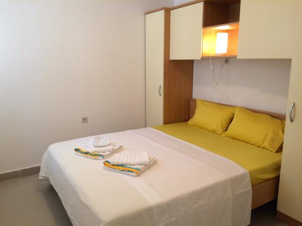 Turistička pristojba je uključena u cijenu.Apartman je moderno opremljen, sastoji se od spavace sobe sa bracnim krevetom, kuhinje koja ukljucje veliki frizider sa frizerom, perilicu za sudje, mikrovalnu itd, , blagavaona, dnevni boravak sa kaucem na razvlacenje, te kupaone sa perilicom za rublje. Ukljucuje dvije terase, prema moru i straga, obje natkrivene. Uz to, na svim prozorima i vratima postavljene su mreze za komarce. Gostima su na usluzi lezaljke i mekani rucnici, TV and Wifi.