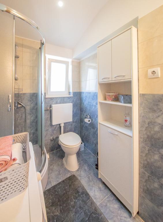 - Apartman se nalazi na prvom katu u zgradi (kući) 2+1 - Smješten je 150 m od centra, jedna ulica vas dijeli od rive, 5 min lagane šetnje do plaže. - Jednosoban komforan apartman 43 m2 sastoji se od: predsoblja, blagovaonice, dnevnog boravaka, kuhinje,wc, soba, balkon sa pogledom na more. - Moderno opremljen sa svim potrebnim sadržajima: perilica rublja, perilica posuđa, ugradbena pećnica, ploča za kuhanje, tv ravnog ekrana, klima, wi-fi, sef… - Osiguran besplatan privatan parking.