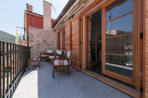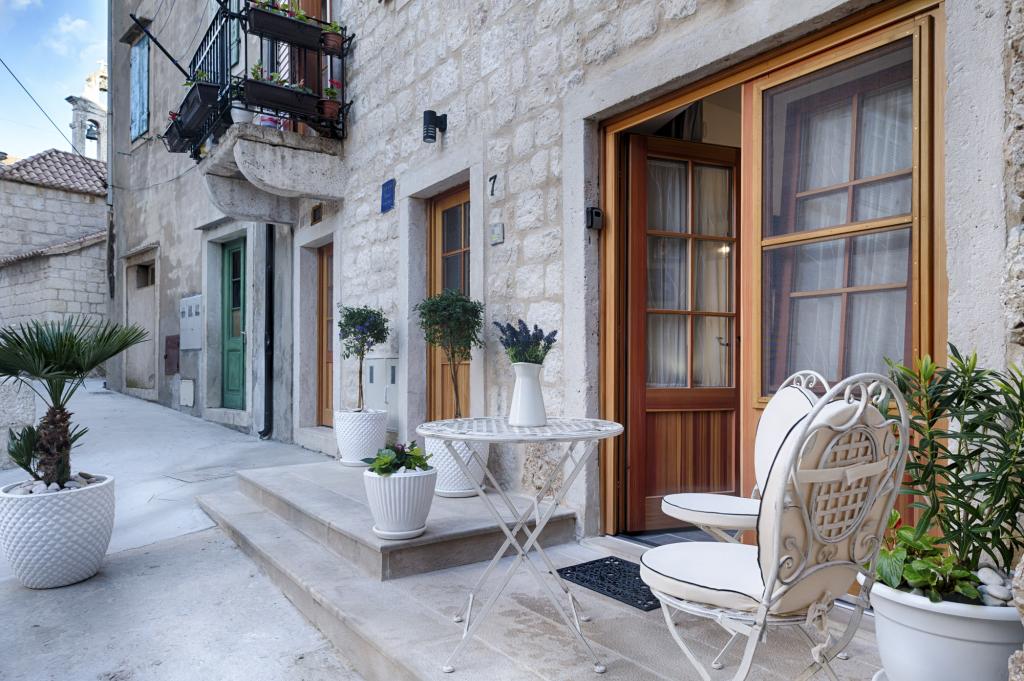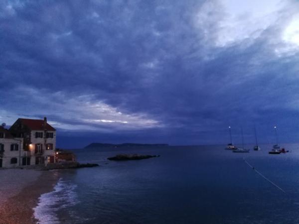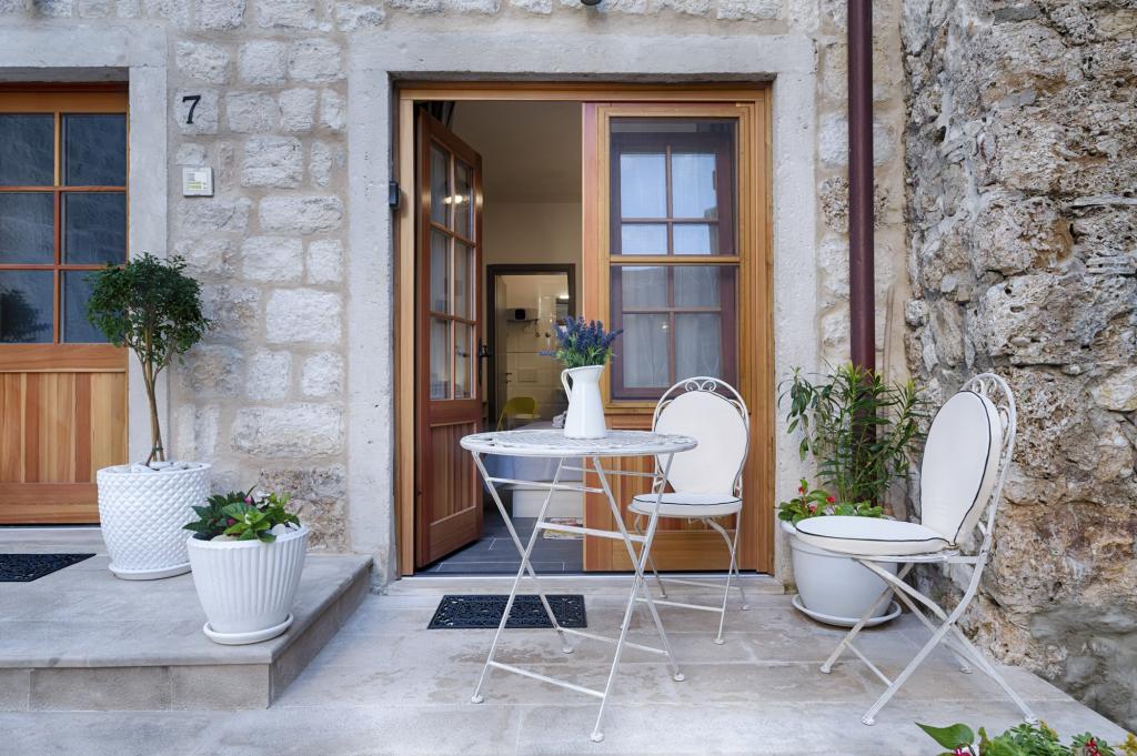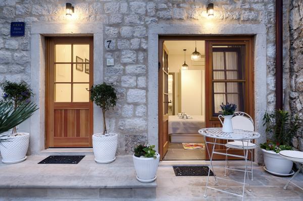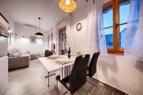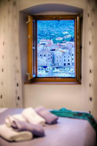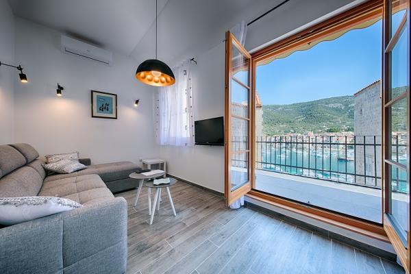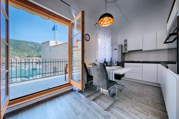 Apartman je smješten na 2 i 3 katu u staroj kamenoj kući iz 18 stoljeća, prvi red do rive i 20 metara od mora. Samo nekoliko koraka dalje je Komuna, kamena kula, simbol Komiže. Najbliža plaža je udaljena samo 100 metara.Na drugom katu se nalaze 2 dvokrevetne sobe svaka sa svojom kupaonom; na trećem katu je potpuno opremljena kuhinja ,blagavaona i dnevni boravak koji su povezani s terasom s koje se pruža prekrasan pogled na zaljev.Terasa je pogodna za blagovanje i odmor.Dnevni boravak je kompletan sa SAT TV.Spavaće sobe i dnevni boravak su klimatizirani.U apartmanu postoji bežićna WI-FI veza. Kuća je renovirana 2017 godine prema najvećim standardima, savjetima konzervatora, koristeći prirodne materijale. Soba Demaria je novo renovirana 2019. godine i ima vlastitu kupaonicu. Smještena je u prizemlju kuće. Soba je opremljena TV, klima uređajem, bežičnim internetom,frižiderom. Ispred sobe se nalazi mala terasa sa stolom i stolicama, koja je gostima na raspolaganju.