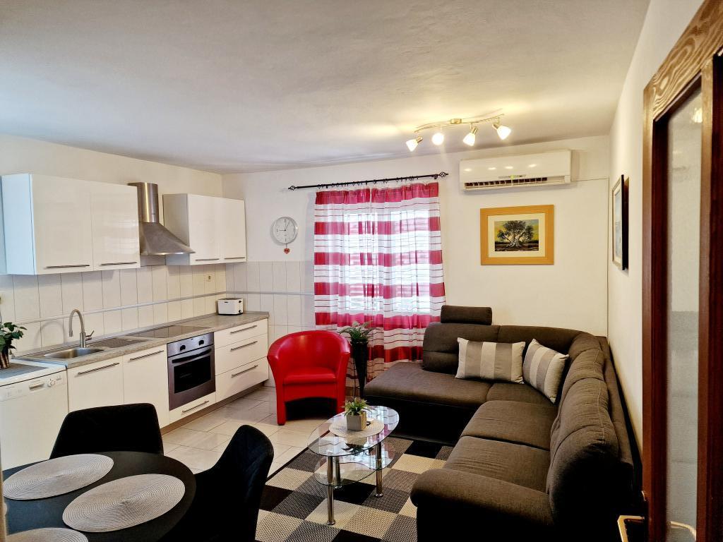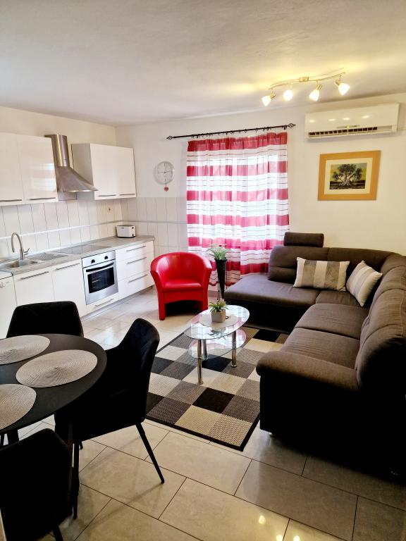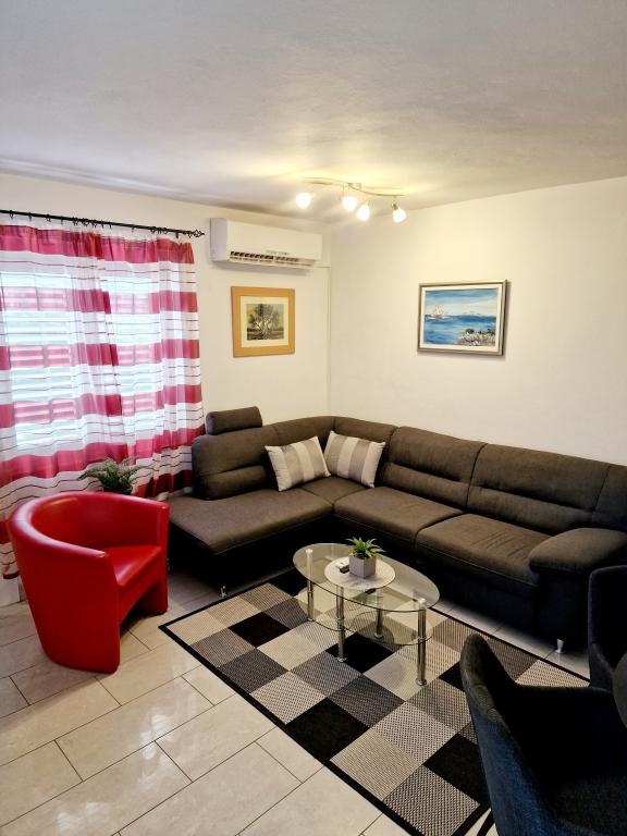 Apartman je smješten u mirnom okružju, u prizemlju male stambene jedinice sa 2 kata. Najbliža plaža Banje je udaljena 100 metara od apartmana. Hotel Marko Polo je udaljen cca 50 metara od apartmana. Parking je dostupan i uključen u cijenu smještaja.