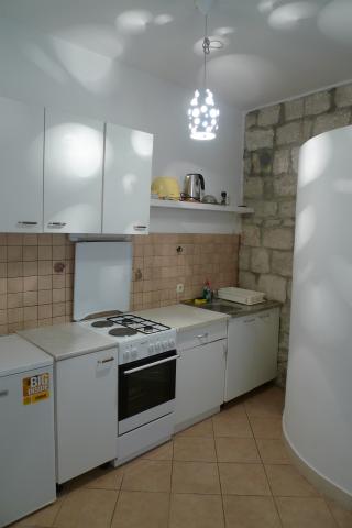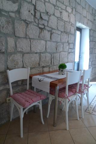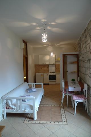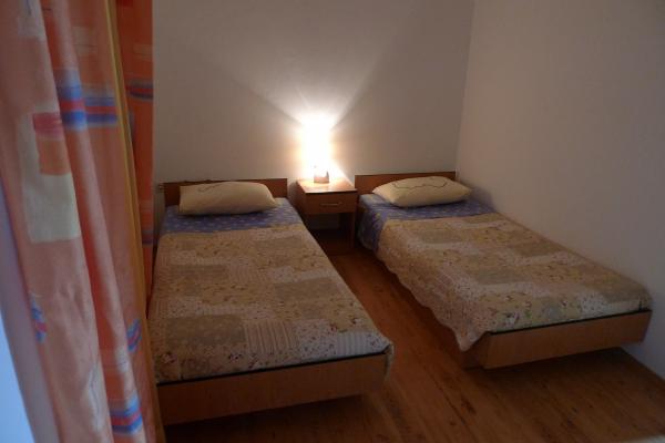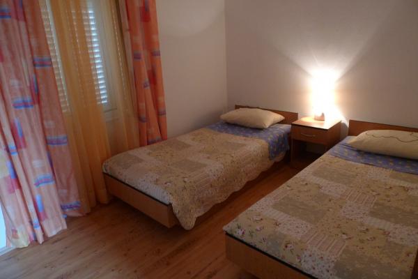 Apartman se nalazi na prvom katu,ima 55 m2. Sastoji se od dvije spavace sobe; jedna je sa bracnim krevetom a druga sa dva odvojena kreveta koji se po potrebi mogu spojiti.U dnevnom boravku ima i pomocni lezaj za petu osobu. Kuhinja je potpuno opremljena. Kupaonica ima tus kabinu. Apartman ima i mali balkon na zapadnoj strani gdje mozete uzivati u zalasku sunca. U apartmanu je klima ,tv i wifi sve se koristi besplatno.