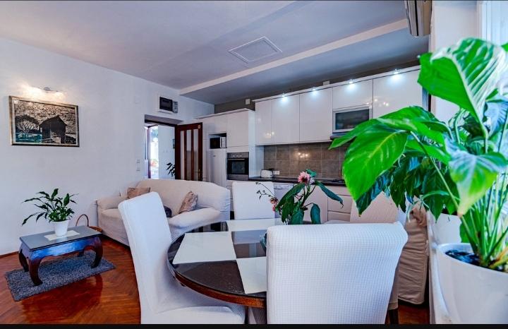 Luxuzno i kompletno opremljen apartman za 4 osobe smješten je odmah uz plazu i šetnicu. Stari grad nalazi se sedam minuta od apartmana. Apartman ima taracu s pogledom na more. Apartman je smješten prvi red do mora i u blizini je svih sadrzaja, a dovoljno udaljen da je izbjegnuta buka sa ceste. Apatrman je pogodan za četiri osobe, a parkirno mjesto osigurano je u lokalnoj garaži koja se nalazi par minuta od apartmana. Apartman ima 68 m2 i pogodan je za prijem 4 osobe.