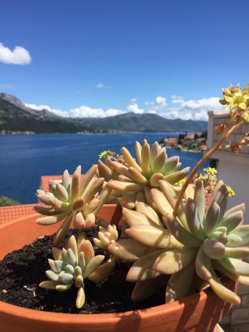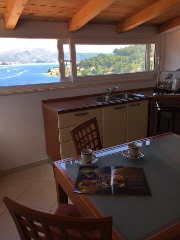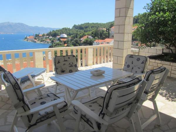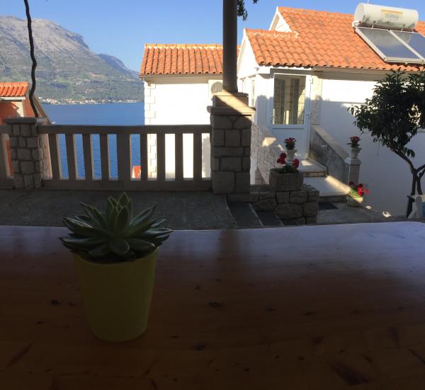 Vrijedne ruke domaćina sagradile su ovu kamenu kuću okruženu mirisima mediteranskog bilja. Pogled koji se pruža mora se doživjeti, a ugodnom šetnjom uz more, nekih petnaestak minuta dolazi se do povijesnog grada Korčule, grada u kojem povijest živi u sadašnjosti.
