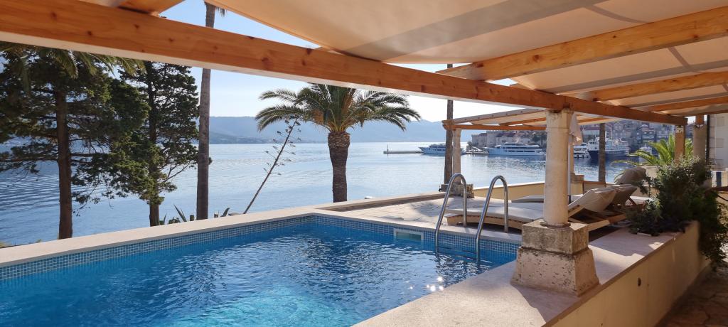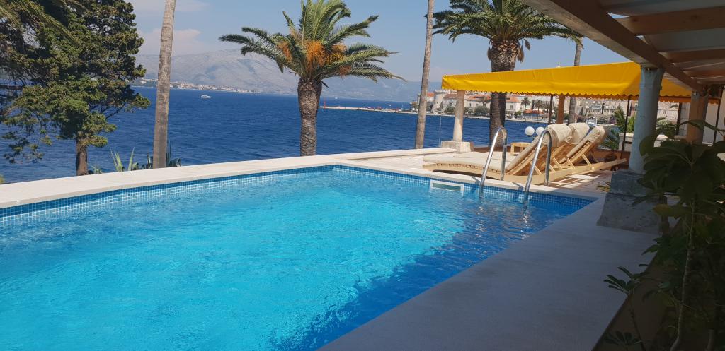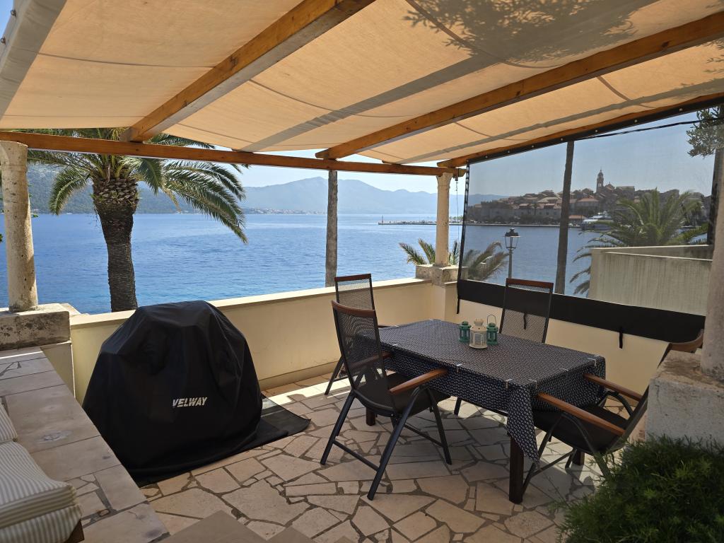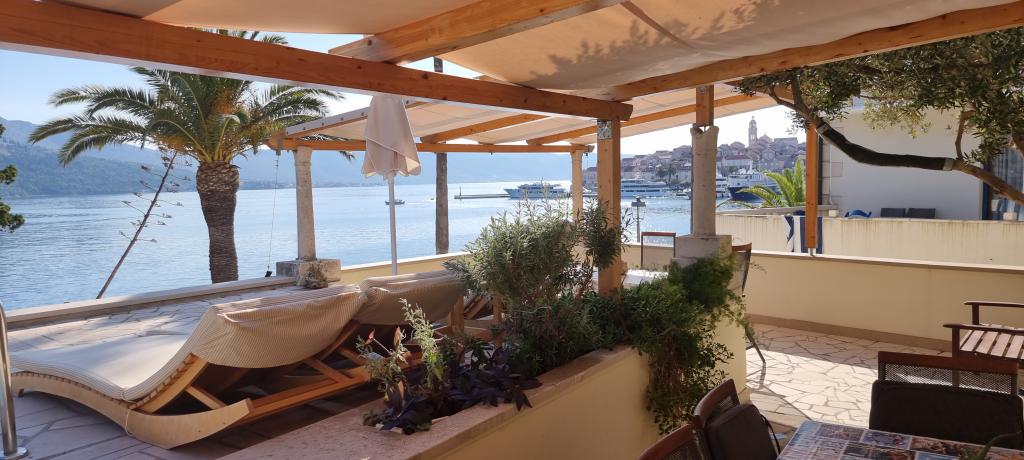 Apartman ID 759 ima 83 m2 .Luksuzno opremljen i nalazi se u predivnom dijelu grada Korcule uz more.Apartman ima svoj bazen i velike dvije terase te terasu za suncanje. U apartmanu se nalazi apsolutno sve sto Vam treba za odmor.Dvije klima jedinice, veliko kupatilo, Dva TV-a, lijepi komforni prostor , dvije sobe i imate svoj parking za vozilo.Do centra grada imate doslovce 5 minuta hoda a do plaze 2 minute.Rostilj na terasi za Vas gastronomski uzitak. U apartmanu imate preilicu i susilicu rublja, perilica za posudje,dva kafe aparata,tostere , juice makere itd. Kompletno i suvremeno opremljeni apartmani u mirnom predjelu grada Korcule koji su smješteni prvi red do mora; Objekt se nalazi 5 minuta hoda do centra grada a plaza i parking su odmah ispred . Apartmani i sobe ID 760 i ID 761 te sobe ID 5589 i ID 5599 su luksuzni.Terasa sa straznje strane takodjer je pokrivena sa pergolom i platnom. Imatee rostilji svoj parking.