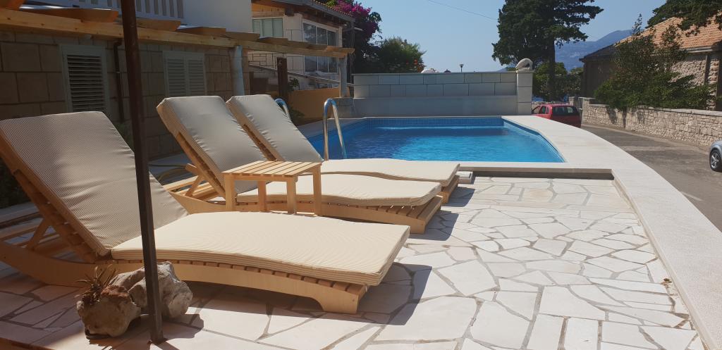 Bazen na slikama je samo za koristenje gostima u apartmanu A4 ID: 759 U bazenu nije dozvoljeno kupanje kucnim ljubimcima. Ukoliko se to dogodi gost placa trosak kompletne izmjene vode te ciscenje bazena. Bilo kakvo ostecenje u apartmanima i sobama napravljeno od strane gosta se naplacuje. Kucni red i mir se mora postovati, koji je istaknut u svim prostorima. Posteljinu, rucnike i krpe za kuhinje sve imate u kod nas i ne trebate nositi sa sobom. Ciscenje apartmana i soba se posebno naplacuje odvojeno od cijene smjestaja ( apartman ID 759 ciscenje 50 Eura;apartmani ID 760 i 761 ciscenje 40 Eura i sobe 30 Eura ) Parking za automobile je osiguran samo za apartmane a za sobe samo ako korisnici apartmana nemaju vozila pa korisnici soba mogu koristiti nas vlastiti parking. Kontakt na e mail: marovicp@yahoo.com ili mobitel/ whats up:+38598244974