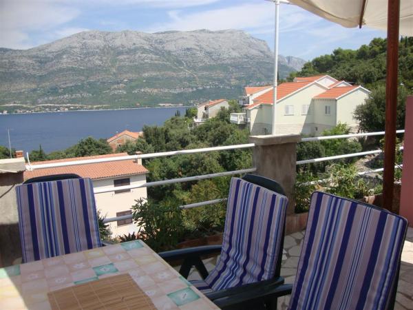 Apartmani Mia se nalaze u mirnom i zelenom naselju Medvinjak udaljenom 1,5 km od starog grada Korčula, 20 minuta šetnjom uz more. Kuća je udaljena 150 m od lijepo uređene plaže i ima pogled na more. Na 1. katu se nalaze 2 apartmana po 40 m² (za 2-4 osobe), koji imaju spavaću sobu, dnevni boravak sa kuhinjom, kupatilo, sat- tv , terasu od 12 m², gril i parking u dvorištu. Pogodni su za obitelji s djecom, a djeca imaju popust. Na 2. katu se nalaze 3 apartmana. Svi apartmani imaju sobe, kuhinju, kupatilo, terasu sa pogledom na more, klima uređaj, sat-tv , upotrebu grila i parking u dvorištu. 1 apartman je sa 2 spavaće sobe (za 4 osobe - 50 m²), a 2 su studio apartmana (za 2 osobe - 25 m² i 3 osobe - 28 m²). Cijene su okvirne, a točne cijene su dostupne na zahtjev.. Cijene su 12-18 EUR po osobi po danu. Djeca imaju popust ovisno o godinama starosti i broju djece na boravku. Dobrodošli!