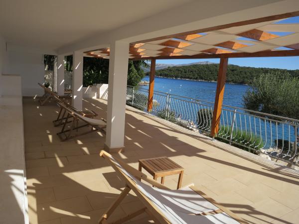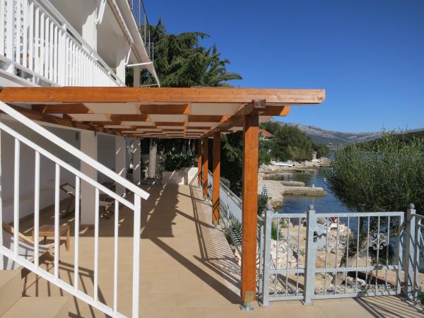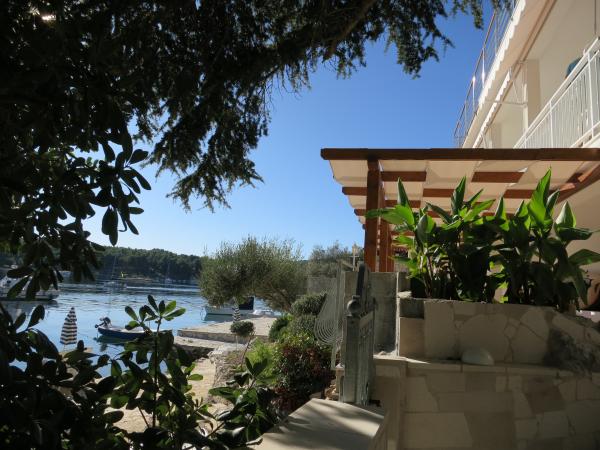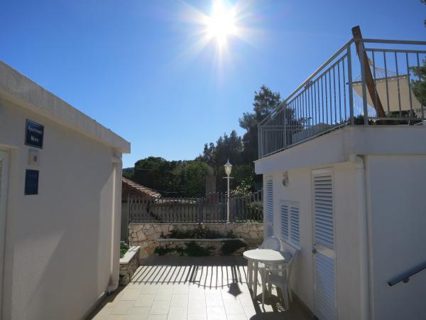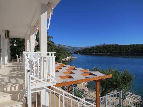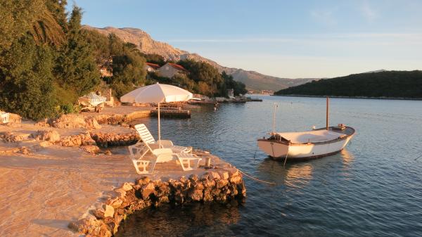 Kuća se nalazi tik uz more (prvi i jedini red; na 5m), s privatnom plažom (uz rezervirane besplatne ležaljke i suncobrane) te vezom za brodicu, sve u mirnom i lijepom susjedstvu i okruženju. Svega 8 min. pješice do starogradske jezgre, i samo 2 min. od hlada stoljetne Park šume Hober. 3 posve nova (2013-2015 g. ) Studio apartmana, za max. 3 osobe po jedinici (2 plus 1). Svaki apartman ima vlastiti izlaz na terasu, s pogledom na more te na poluotok Pelješac. Svi su apartmani standardno opremljeni i klimatizirani, s malom kuhinjom, kupanicom i WC-om, te bežičnim internetom. Besplatno rezervirano privatno parking mjesto u dvorištu kuće. Besplatna upotreba roštilja i peke, kao i posudba osnovne ronilačke opreme. Besplatna kava, čaj i domaće maslinovo ulje. Tu su i 2 bicikla (m/ž) i sportski kajak za iznajmljivanje.
