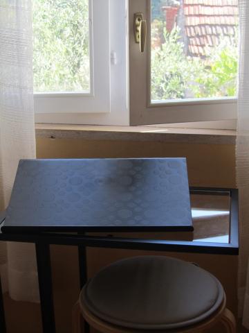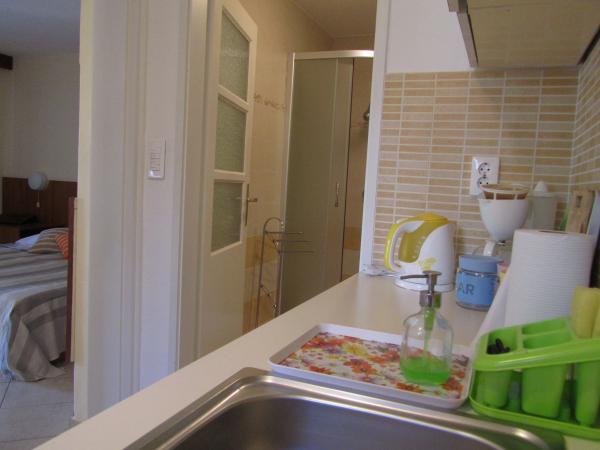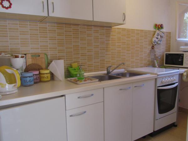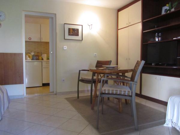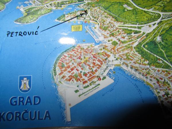 Apartman se nalazi u mirnom obiteljskom dijelu grada Korčule, u prizemlju obiteljske kuće s vlastitim ulazom, vlastitom terasom i pogledom na vrt. U susjedstvu se nalaze teretana i teniski tereni. Do plaže se stigne za 10minuta laganog hoda, dućan je oko 100m udaljen, dovoljan za svakodnevne potrebštine, oko 700m udaljen nalazi se i veći trgovački centar. Centar grada udaljen je 20ak minuta lagane šetnje. Parking je osiguran. privatni, uz sam apartman. Apartman je potpuno opremljen svim aparatima koji mogu zatrebati za vrijeme odmor- štednjak, hladnjak, mikrovalna, aparat za kavu, kuhalo za vodu, kafetjera, toster, pegla, stol za peglanje, upotreba perilice rublja na zahtjev. Posteljina i ručnici su besplatni. WI-FI dostupan je u čitavom objektu i besplatan je, također. Televizor je ravnog ekrana, antena je satelitska.