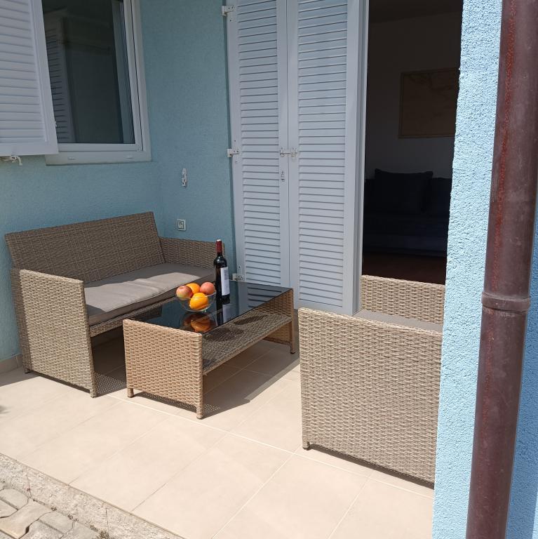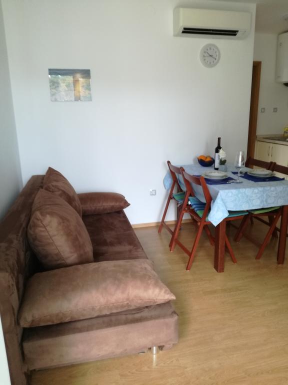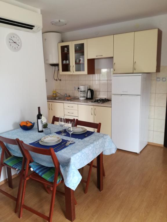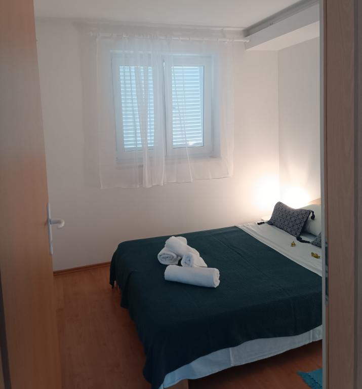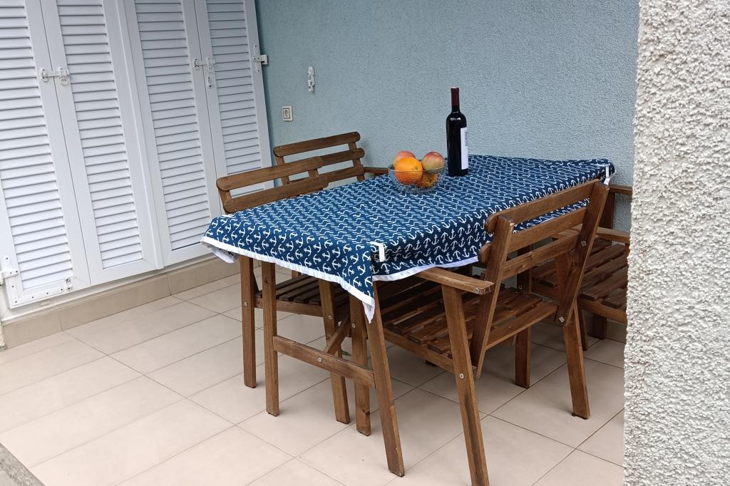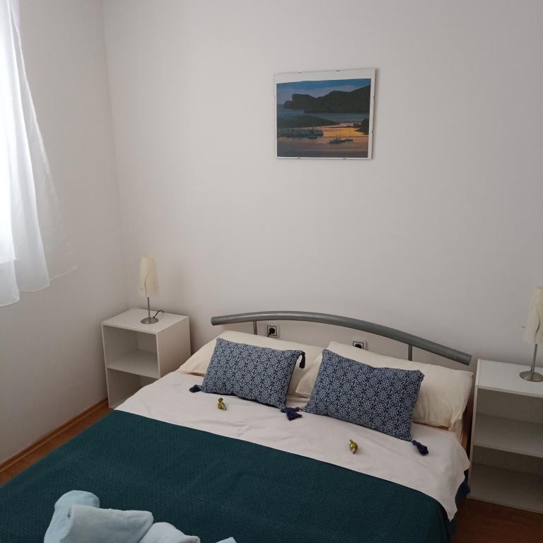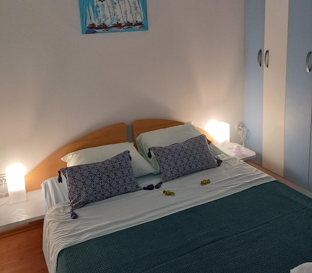 Apartmani *** , TV/SAT klima, balkon, spavaća soba odvojena, dodatni ležaj u dnevnom boravku, parkirno mjesto, do mora i plaže, dućana i kafića 10 min, do starog grada 25 min lagane šetnje. Kuća se nalazi i mirnom dijelu grada u blizini bazena Gojko Arneri u kojem se nalazi zatvoreni bazen i teretana i može se koristiti cijele godine. Apartmani sa zasebnom spavaćom sobom koja ima bračni krevet, dnevnim boravkom u kojem je smješten dodatni krevet koji se pretvara u ležaj jednu osobu, kuhinja je u sklopu dnevnog boravka sa svim potrebnim sadržajima, kupaonica sa tušem potpuno opremljena, balkonom sa stolom sa četiri stolca, parking mjestom ispred kuće. U cijenu uključeno: završno čišćenje, parking, Wi-Fi, klima uređaj, sušilo za kosu zajednički roštilj, suncobran, boravišna pristojba