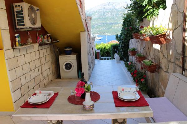 Apartman se nalazi u mirnoj uvali Medvinjak, udaljenoj otprilike kilometar ili dvadesetak minuta hoda od centra grada Korčule. Smještaj je bio vrlo ugodan i uredan; apartman je malen, ali udoban, sasvim dovoljan za par ili obitelj s manjim djetetom. Ima kuhinjicu, blagovaonicu, kupaonicu i spavaću sobu. Apartman ima klimatizacijski uređaj i dostupan WiFi. Terasa ispred apartmana je predivna i pruža lijep pogled na Pelješac i more s obzirom na to da je apartman smješten na uzvisini. Gazdarica Senija jako je ljubazna i gostoljubiva. Sve preporuke!