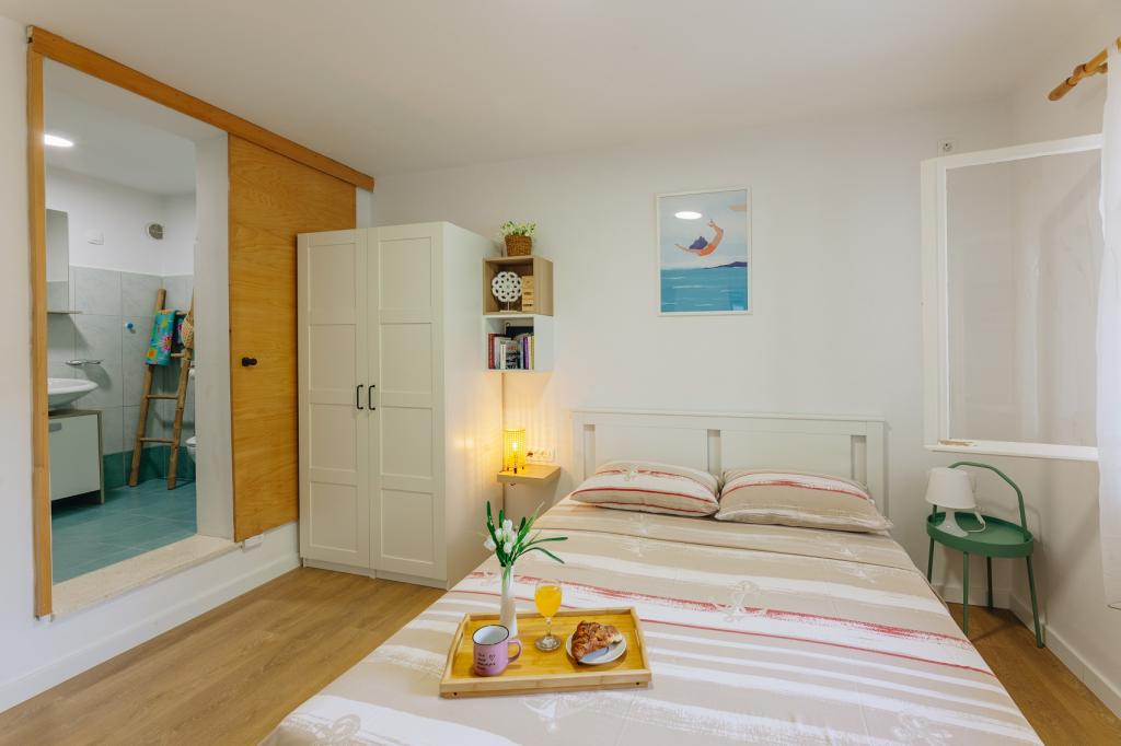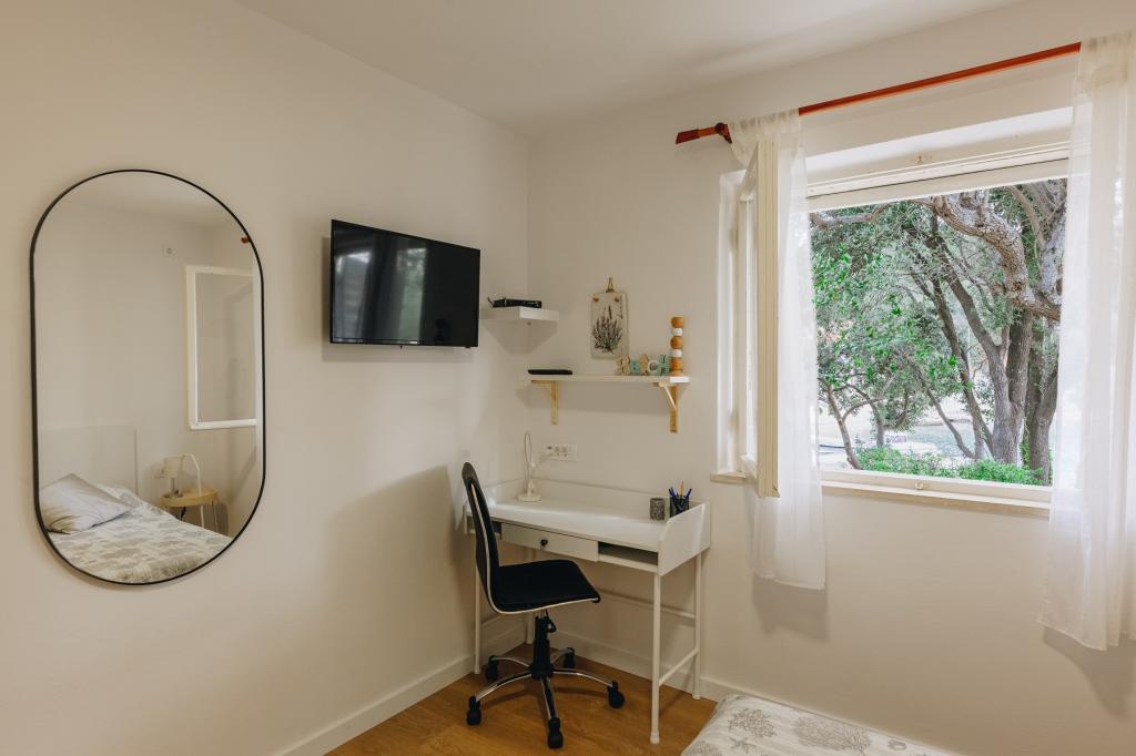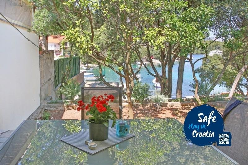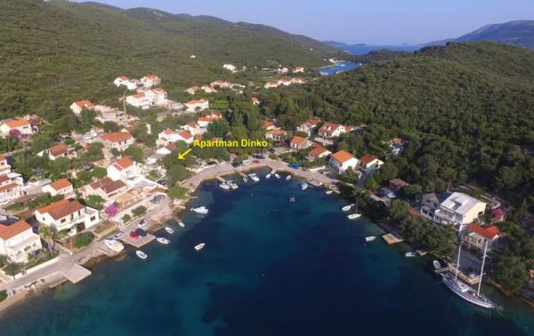 Apartman Dinko je jednostavna i udobna mala kuća na plaži, smještena u mirnoj uvali Žrnovska Banja, na samo nekoliko koraka do mora, a potpuno zaklonjena od pogleda prolaznika, okružena vrtom maslina, agruma i povrtnjakom samo za vas. Ako želite pobjeći od svakodnevice i odmoriti se od svega, na pravom ste mjestu! S Dinkom ćete se povezati istog trenutka, poklonit će vam posebnu umirujuću vibraciju i postat će vaš drugi dom! Zamislite svoju prvu jutarnju kavu na terasi... gledate kristalno čisto more, slušate cvrkut ptica i cvrčaka, udišete miris naranči, maslina i aromatičnog bilja... Apartman se sastoji od potpuno opremljene moderne kuhinje, 2 spavaće sobe, 2 WC i kupaonice, 2 prostrane terase s pogledom na more te parkinga za 2 vozila. Klimatizirano, neograničen internet, TV (digitalni i satelitski programi), roštilj. Idealno za obitelji s djecom, parove i prijatelje. Dođite, prepustite se i uživajte! Dinko vas s radošću očekuje!