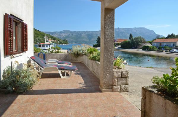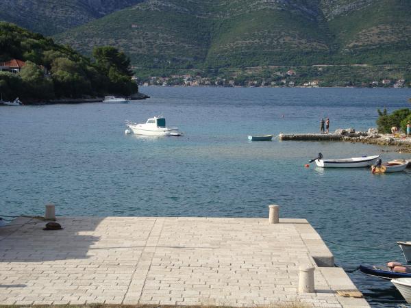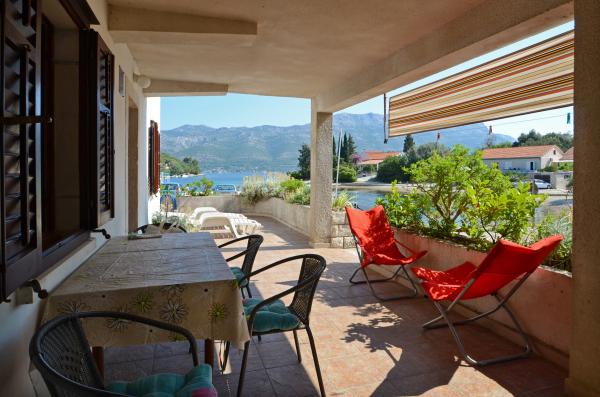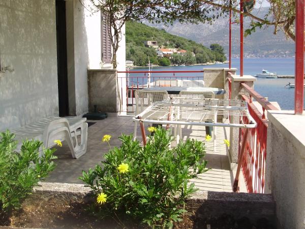 Kuća je smještena u zaljevu 3 km udaljena od centra grada Korčule. Može se unajmiti kao cjelina ili apartman pojedinačno 4 1. Prizemlje je bez stepenica i pogodno je za invalidska kolica.Udaljenost od mora 20 metara,prvi red do mora. Kuća se sastoji od 4 spavaće sobe, 2 kuhinje, 2 kupaone, 2 terase. Pranje rublja kod domaćina uz nadoplatu. Restoran i trgovina udaljen je 350 metara od apartmana.Igralište za djecu udaljeno 100 metara od apartmana . Apartmani su prilagođeni opremljeni obiteljskom smještaju,standardni namještaj. Apartmani su opremljeni sa klima uređajem i internetom. Kućni ljubimci nisu dozvoljeni u apartmanu. Početak iznajmljivanja 01/05 do 01/10. Dobro došli! Žrnovska Banja malo je turističko mjesto. Plaža je šljunčana, Mjesto je relativno mirno. Domaćin može pomoći u kupnji domaćeg vina, rakije i maslinovog ulja. Hvala jer ste bili naši gosti.
