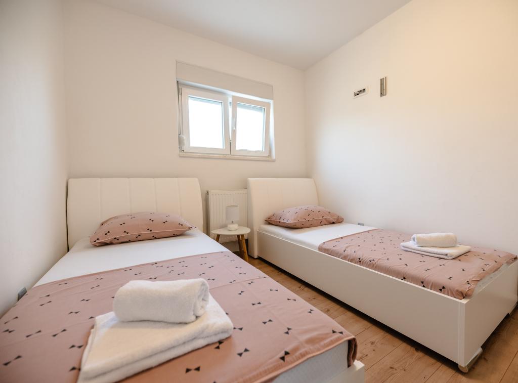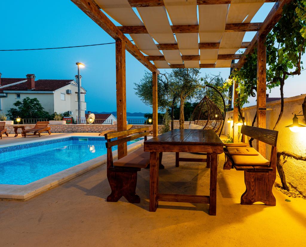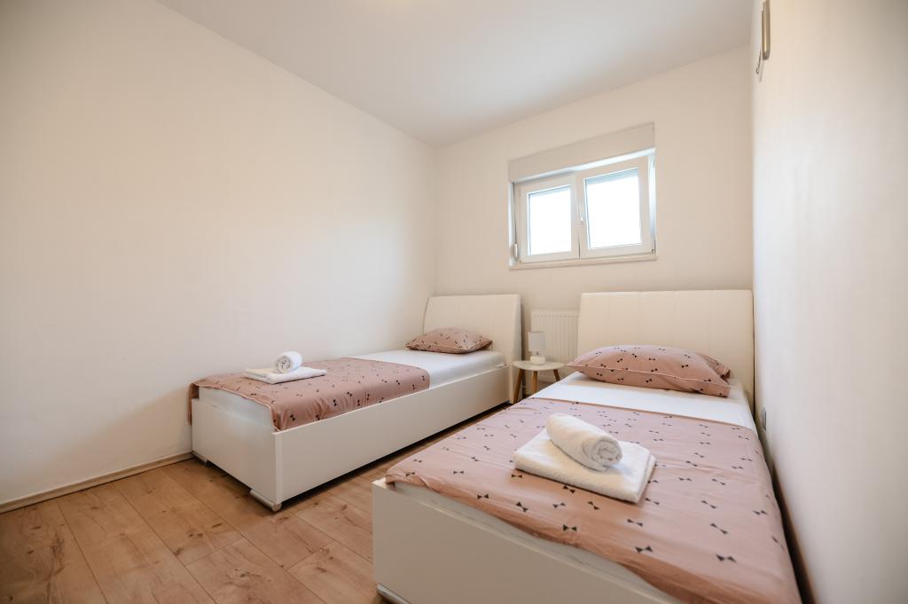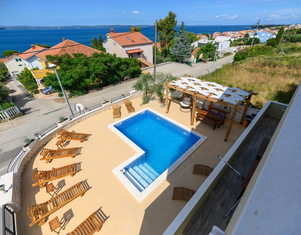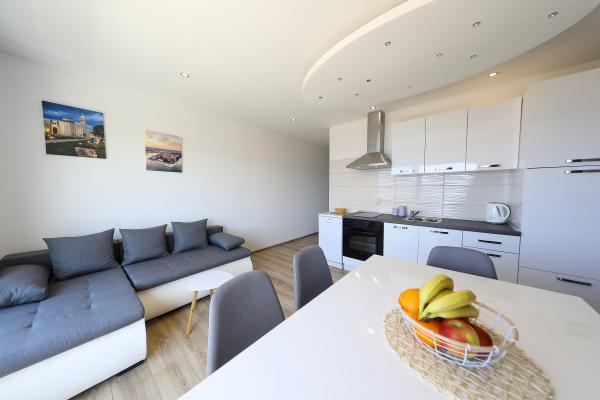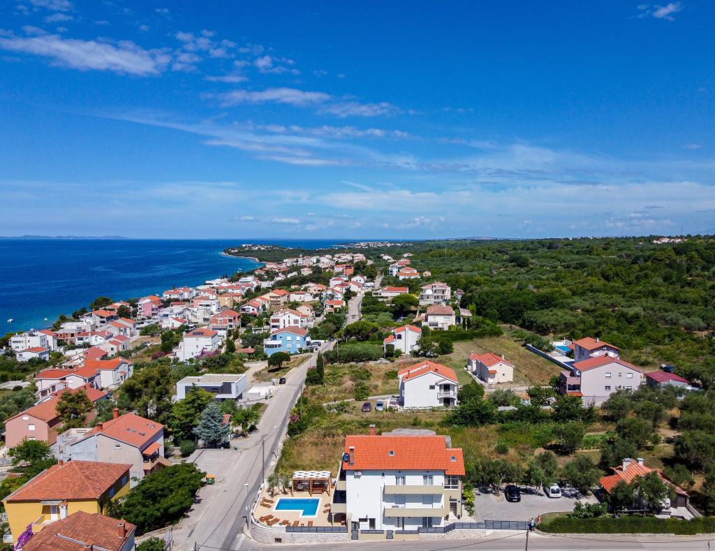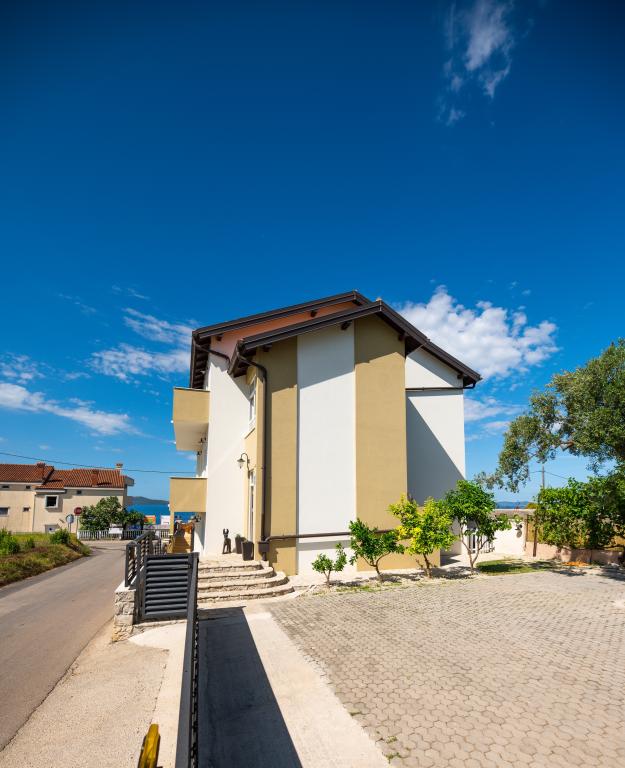 Dobro nam došli dragi gosti! Za sve one koji vole mir i tišinu nudimo idealan privatan smještaj koji će Vam pružiti vrhunsku udobnost, ugodan odmor i osjećaj vlastitog doma. Apartmani M s prekrasnim pogledom na zadarski kanal i otoke smješteni su u Kožinu. Kožino je mjesto pored Zadra udaljeno svega 8km od stare jezgre grada Zadra (crkva sv. Donata, Pozdrav Suncu, glavna zadarska ulica Kalelarga, Zadarska riva, najljepši zalazak sunca, ...) Jedan od apartmana je smješten u prizemlju,a ostala dva apartmana su smješteni na drugom katu objekta koji imaju prekrasan pogled na more i terasu na kojoj se nalazi bazen. Apartmani se sastoje od kuhinje i blagovaonice, dnevnog boravka, kupaonice, wc i spavaćih soba. Svaki apartman ima 2 spavaće sobe. Apartmanima pripadaju i parkirna mjesta. Na terasi uz bazen se nalazi roštilj koji je na raspolaganju svim gostima i dječje igralište koje je smješteno u dvorištu. Apartmani su novouređeni i u potpunosti moderni i opremljeni,...
