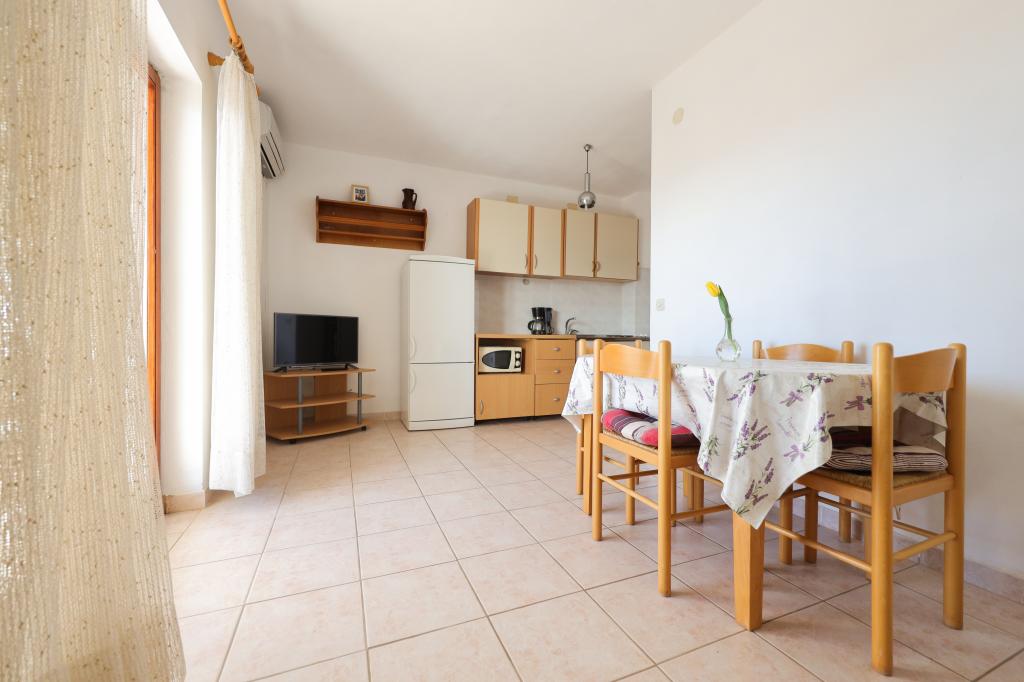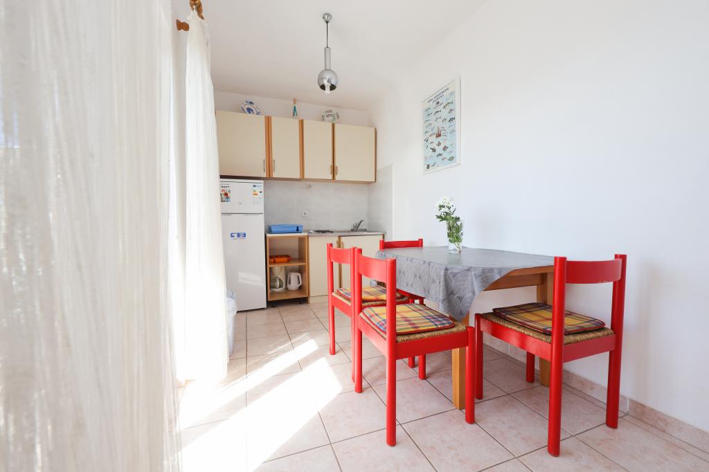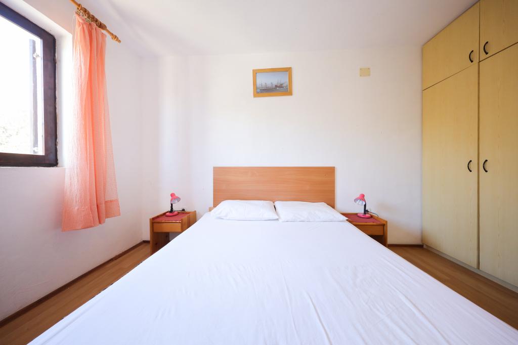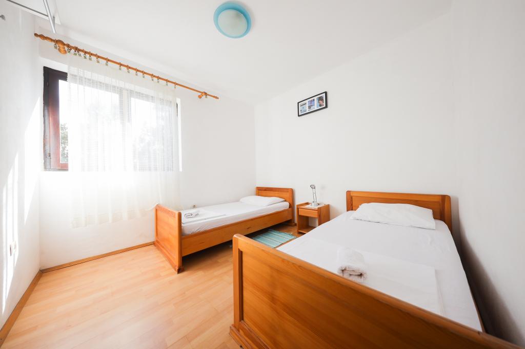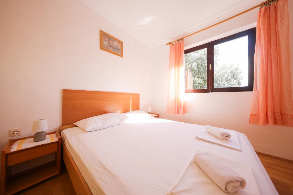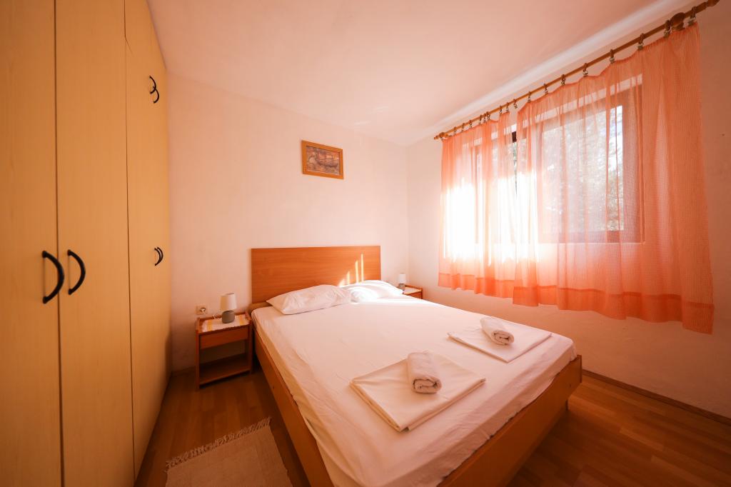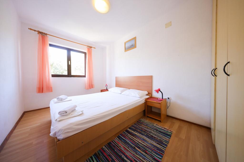 Plaža je udaljena 40 metara. Apartmani su prikladni za 4 osobe, (moguće 5). Imaju dvije odvojene spavaće sobe po dva kreveta (2 bračna kreveta, 2 odvojena), terasu sa pogledom prema moru. Apartmani sadrže potpuno opremljenu kuhinju, kupaonicu (ručnici uključeni), spavaće sobe sa posteljinom, osiguran parking. Moguće je koristiti vanjski roštilj. Na zahtjev možemo staviti dječji krevetić.