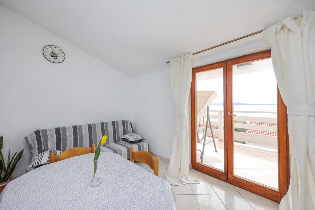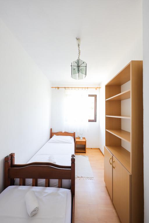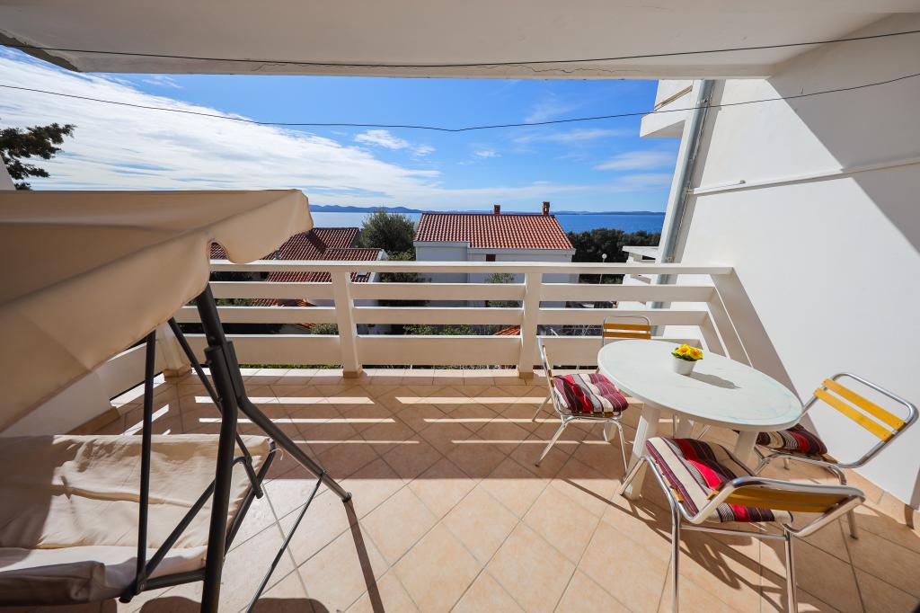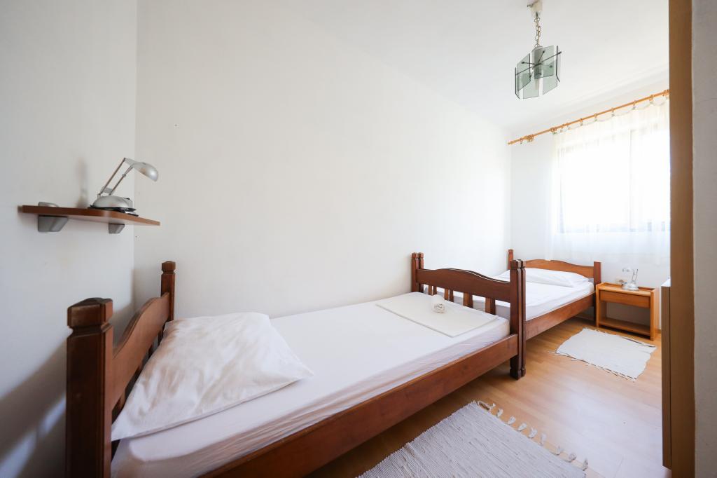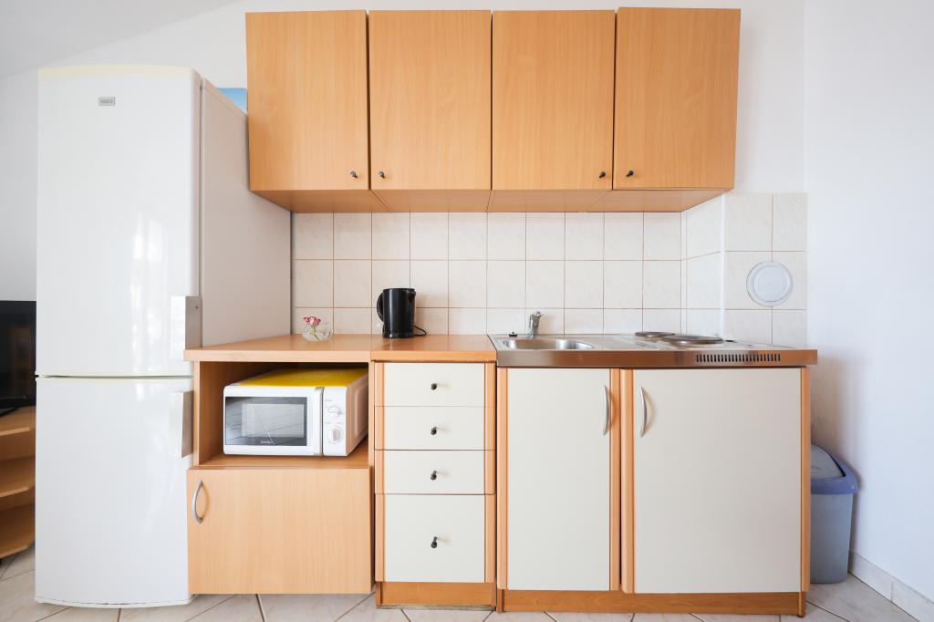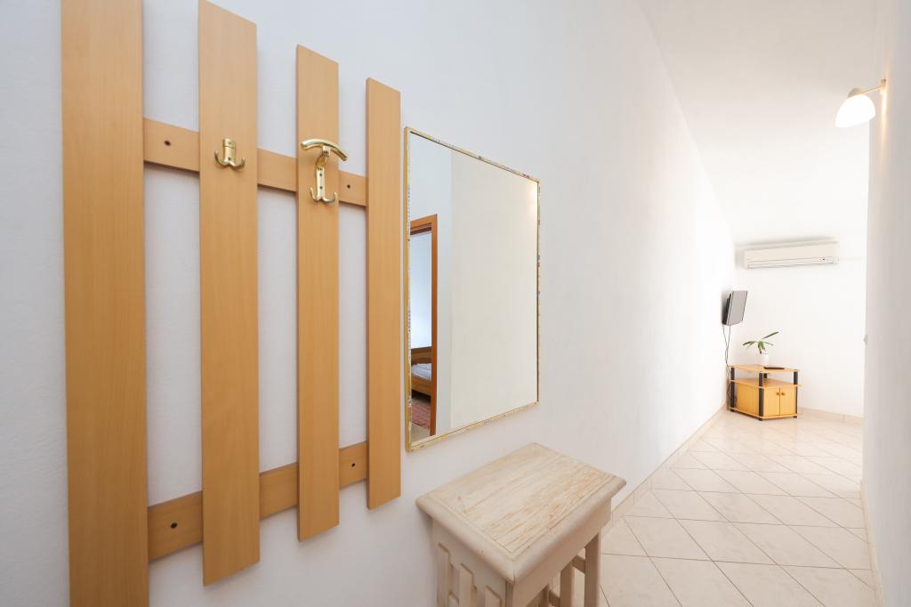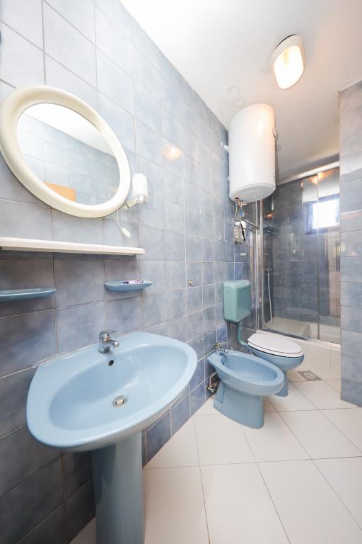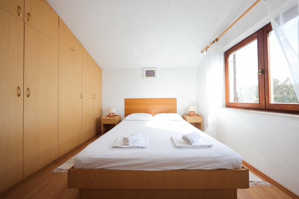 Plaža je udaljena 40 metara. Apartmani su prikladni za 4 osobe, (moguće 5). Imaju dvije odvojene spavaće sobe po dva kreveta (2 bračna kreveta, 2 odvojena), terasu sa pogledom prema moru. Apartmani sadrže potpuno opremljenu kuhinju, kupaonicu (ručnici uključeni), spavaće sobe sa posteljinom, osiguran parking. Moguće je koristiti vanjski roštilj. Na zahtjev možemo staviti dječji krevetić.