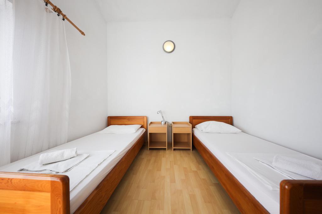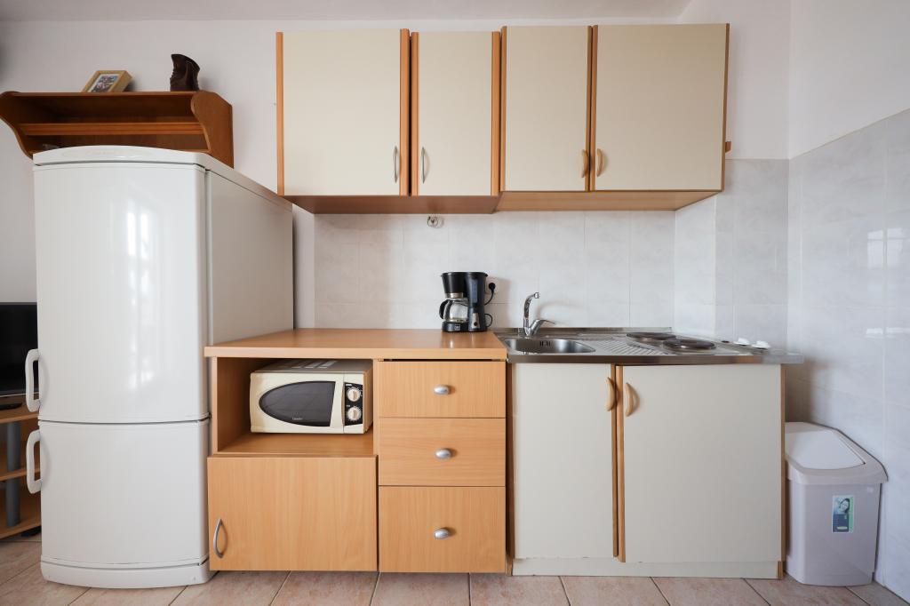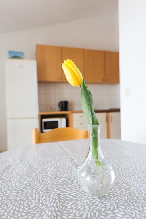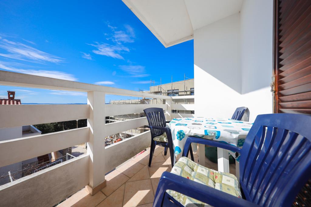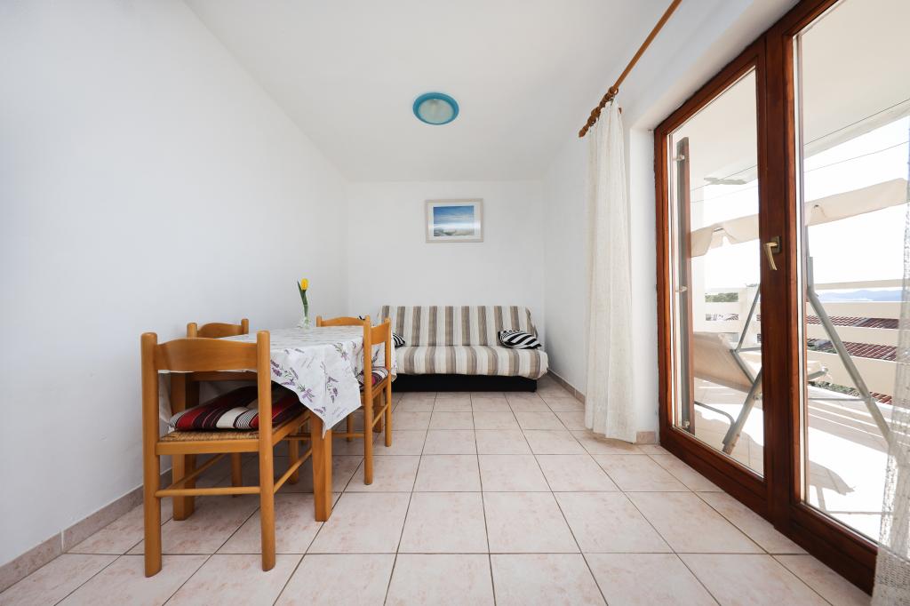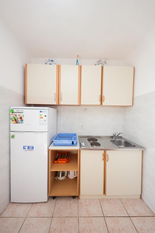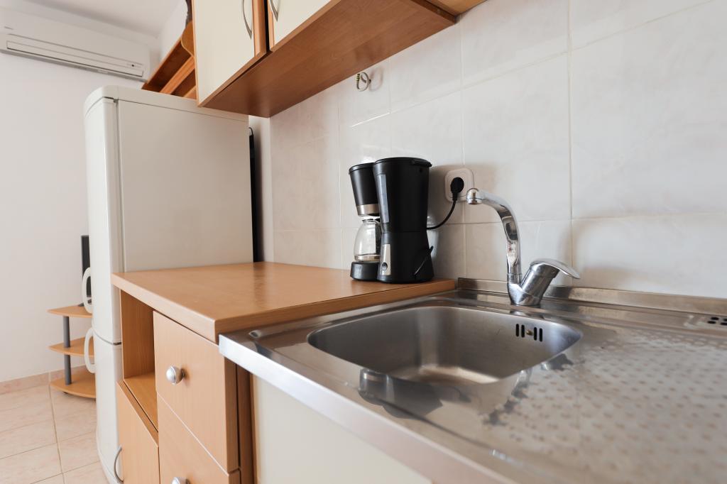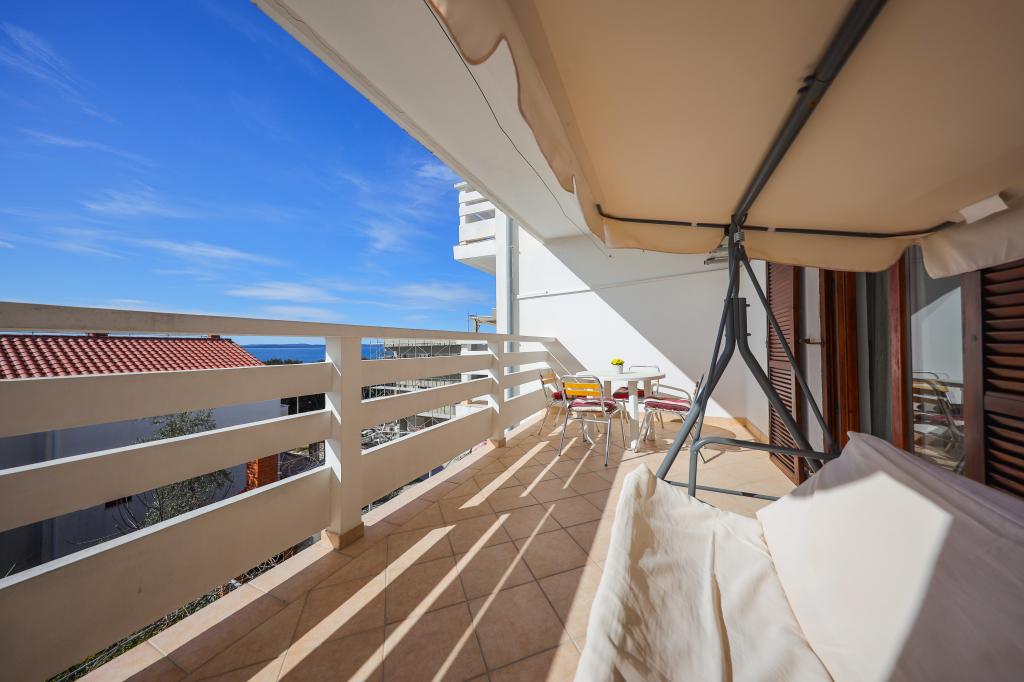 Plaža je udaljena 40 metara. Apartmani su prikladni za 4 osobe, (moguće 5). Imaju dvije odvojene spavaće sobe po dva kreveta (2 bračna kreveta, 2 odvojena), terasu sa pogledom prema moru. Apartmani sadrže potpuno opremljenu kuhinju, kupaonicu (ručnici uključeni), spavaće sobe sa posteljinom, osiguran parking. Moguće je koristiti vanjski roštilj. Na zahtjev možemo staviti dječji krevetić.