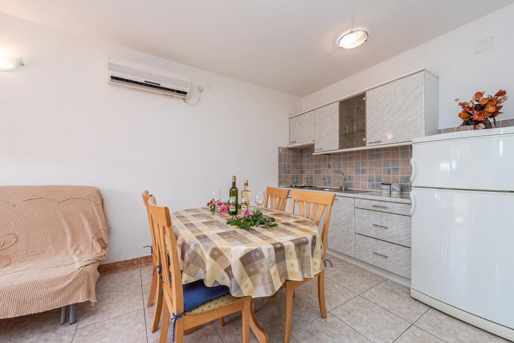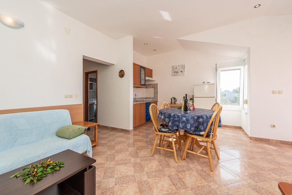 Kompletno i suvremeno opremljeni apartmani u mirnom predjelu Kožino, smješteni 50m od plaže, 5 min hoda do dućana. Objekt sadrži i natkriveni prostor za druženje uz pripadajući komin kao i dva vanjska tuša! Parking osiguran uz objekat za svako vozilo.