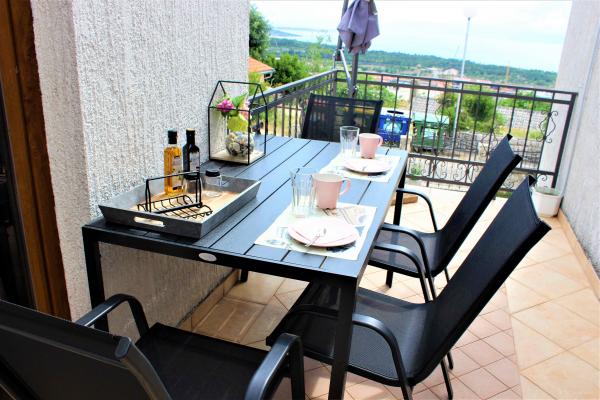 Apartman u obiteljskoj kući veličine 50 m2 pruža priliku za bezbrižno uživanje u ljetu. Sastoji se od kuhinje s blagavaonicom i dnevnom sobom, spavaće sobe i kupaonice, balkon s pogledom na more i zasebnom terasom s roštiljem. Apartman je novouređen i potpuno opremljen ( perilica suđa, štednjak, pećnica, toster, hladnjak, klima uređaj). Osigurano je parkirno mjesto u dvorištu. Kućni ljubimci su dobrodošli uz nadoplatu (10 EU dan) Od najbliže plaže udaljen 800 m, najbliži dućan 200 m. Centar gradića koji je udaljen 800 m od objekta sadrži sve potrebne sadržaje ( pošta, banka, ljekarna, dućani, kafići, restorani) Blizina Rijeke (18 km), Crikvenice (12 km), otok Krk (5 km).