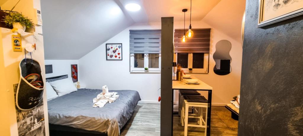 Studio apartman 7. nebo kapaciteta 2+0, a smješten je u Trškom Vrhu, u neposrednoj blizini grada Krapine. 7. nebo je savršen spoj rustikalnog i modernog te odlična opcija za odmoriti se od gradske buke i urbanog života uz prirodu i zagorski zavičaj. Studio se sastoji od kuhinje i blagovaonice, kreveta za spavanje, dnevnog boravka te kupaonice. U sklopu smještaja je i jacuzzi, parking, wi-fi, klima, smart TV, radio, kuhalo za vodu, mikrovalna, indukcijska ploča za kuhanje, hladnjak te razne društvene igre za zabavu (mali nogomet, el. pikado, stolni nogomet, viseća kuglana itd.). Objekt je okružen voćnjacima i cvijetnjacima te manjim dijelom i šumom. Također, gosti imaju mogućnosti korištenja pečenjare, logorske vatrice, ležaljki, ljuljački, sjenice i terase te manjeg vanjskog bazena i tuša u toplim ljetnim danima. Nema nadoplate za kućne ljubimce te su dobrodošli! Dobro nam došli!