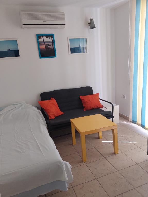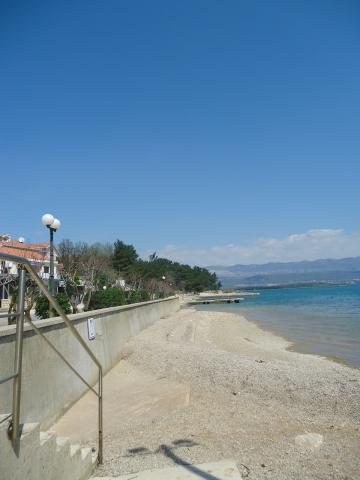 Lijep, uredan stan. Imali smo svoj ulaz, dovoljno veliku terasu. Gazdarica je ljubazna. Gostiona 1 minuta hoda, plaža 2 minute, pekara 5 minuta. Ljubazni susjedi. Plaza je pogodna i za invalidska kolica. Umivaonik i igralište za djecu... vratit ćemo se. Grad je u večernjim satima miran, bez noćnih nemira.