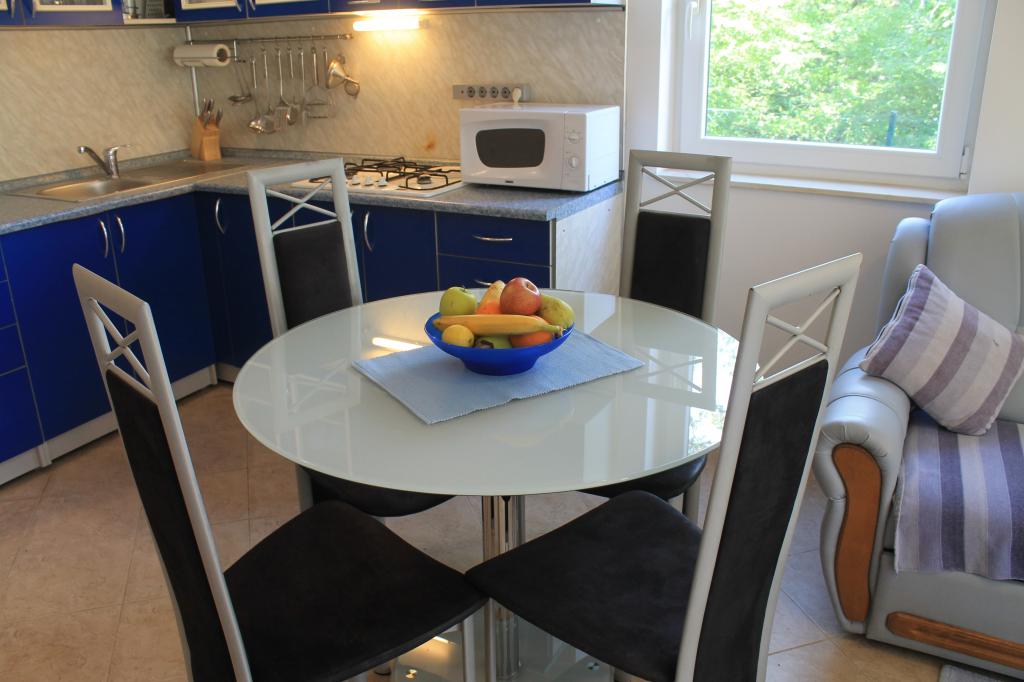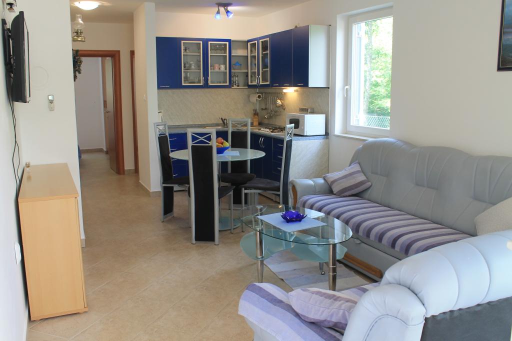 Apartman Lazić se nalazi u mirnom mjestu Čižići na otoku Krku, na obrubu zaljeva Soline nasuprot Crkvenici. Mjesto Čižići dobro je cestovno povezano sa svim gradovima na otoku. Objekt se nalazi na 600 metara od plaže, šumskom stazom 300 metara. Plaža je pogodna za boravak djece kako zbog pličaka tako i zbog toplog mora. Kupanje je moguće od sredine proljeća pa sve do kasne jeseni. Na plaži postoji tuš i mogućnost najma pedalina, ležaljki, scootera, quada. Apartman je moderno opremljen i nalazi se u prizemlju. Raspolaže spavaćom sobom (bračni ležaj i pomočni ležaj ili krevetić za bebe), dnevnim boravkom (s dodatnim ležajem za dvije osobe), dobro opremljenom kuhinjom, kupaonicom (s perilicom za rublje) i terasom s roštiljem (klasični, na struju ili plin), pločom za kuhanje i sudoperom te zelenom površinom.